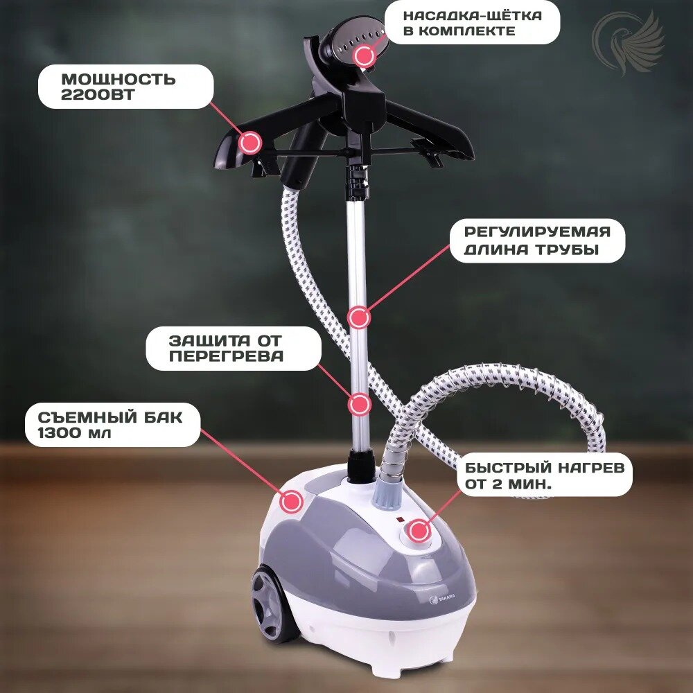 Отпариватель для одежды Takara TGS-161 NEW вертикальный, серый, 2200 Вт интересное: