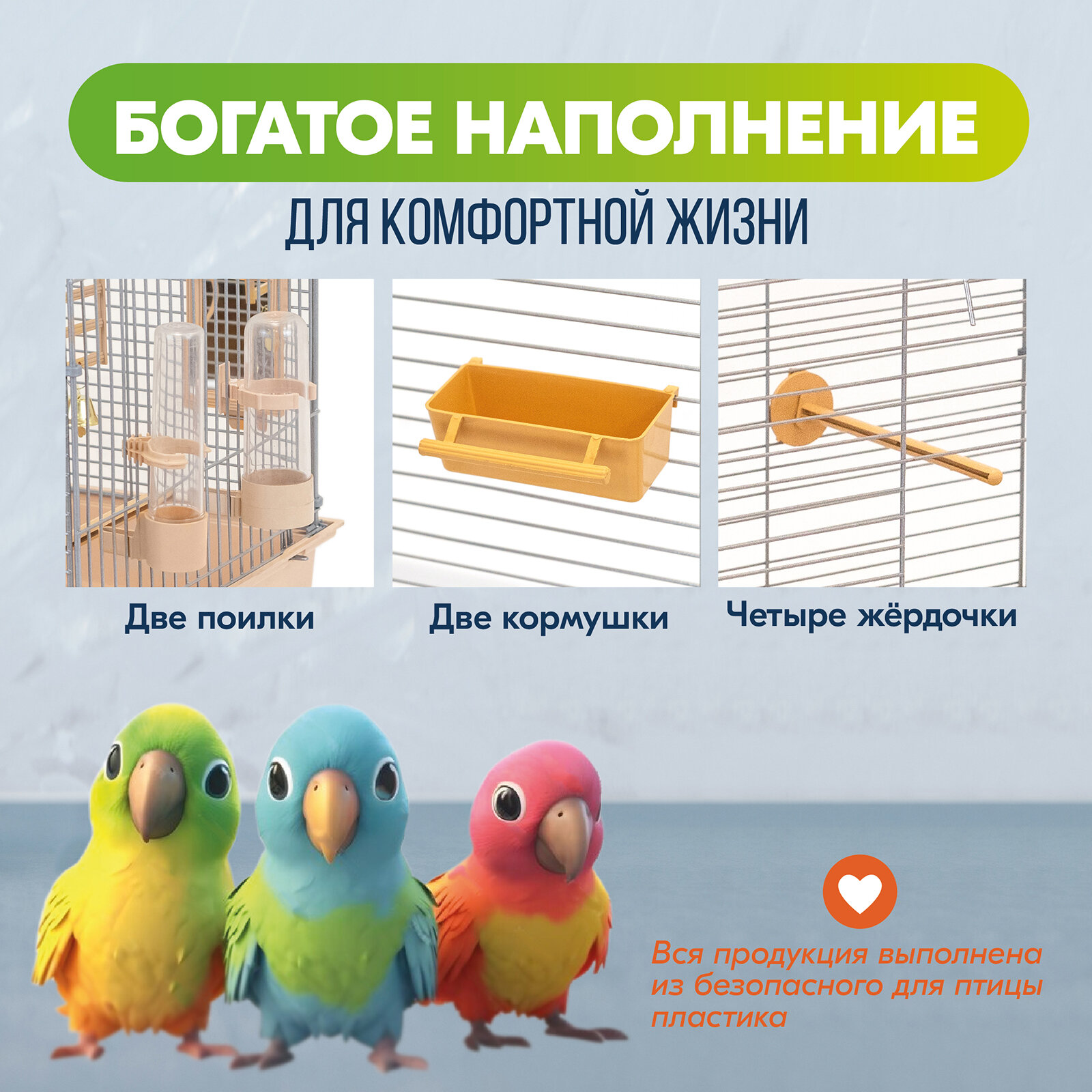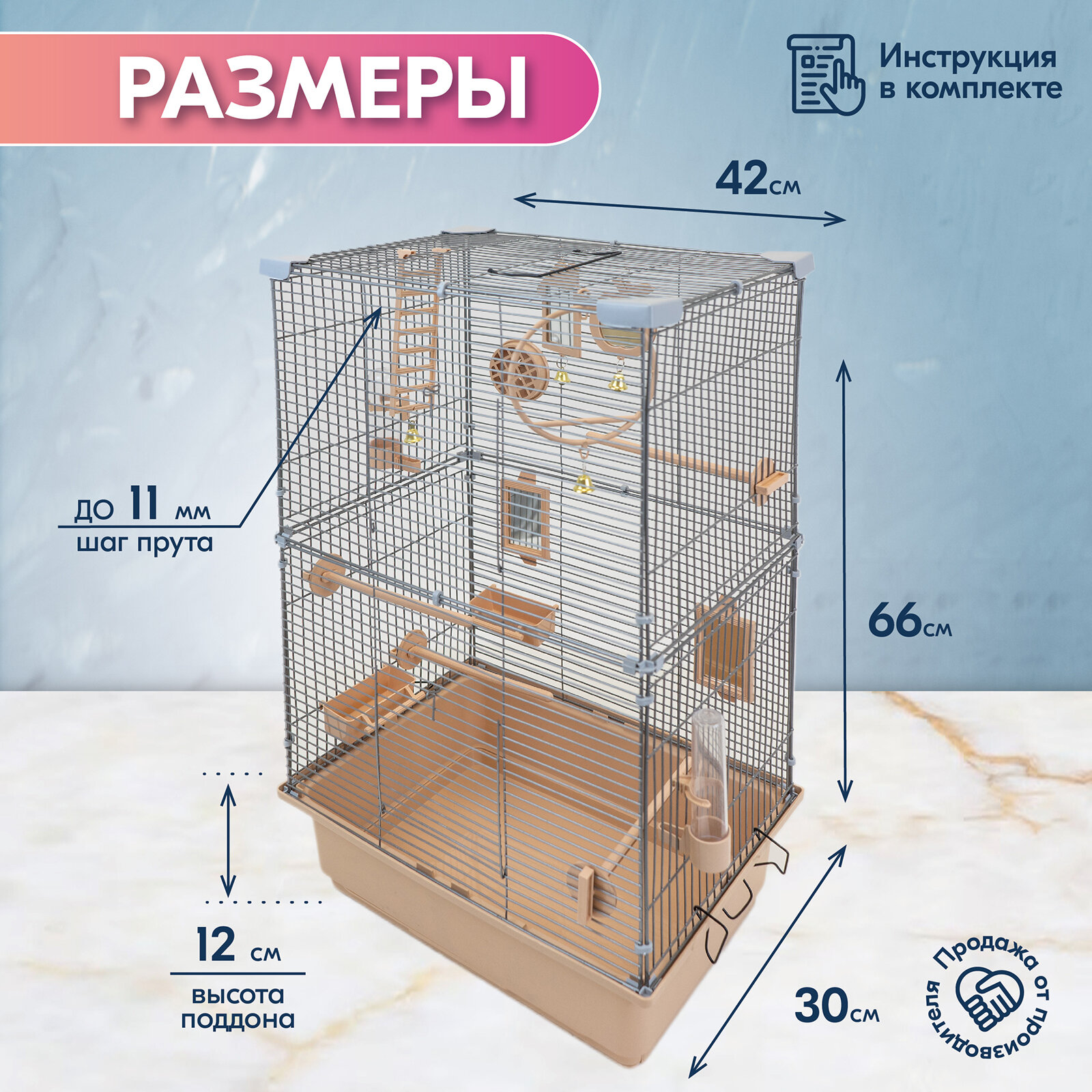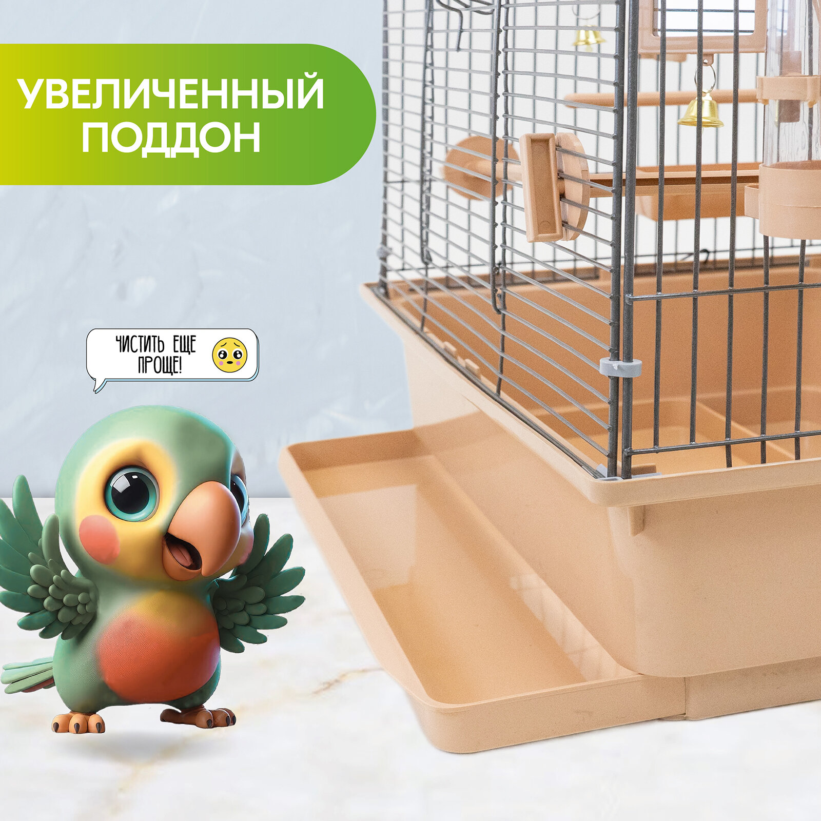 Клетка для птиц разборная "PetTails", шаг прута до 11мм, 42*30*h66см, бежевая интересное: