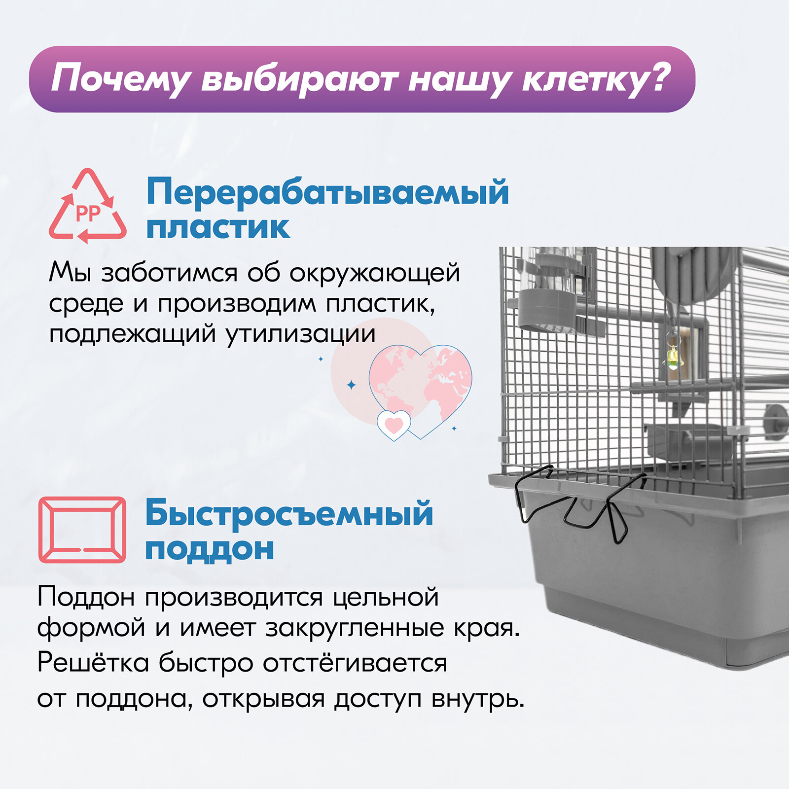 | Особенности | выдвижной поддон / разборная конструкция / вертикальное / горизонтальное расположение прутьев |