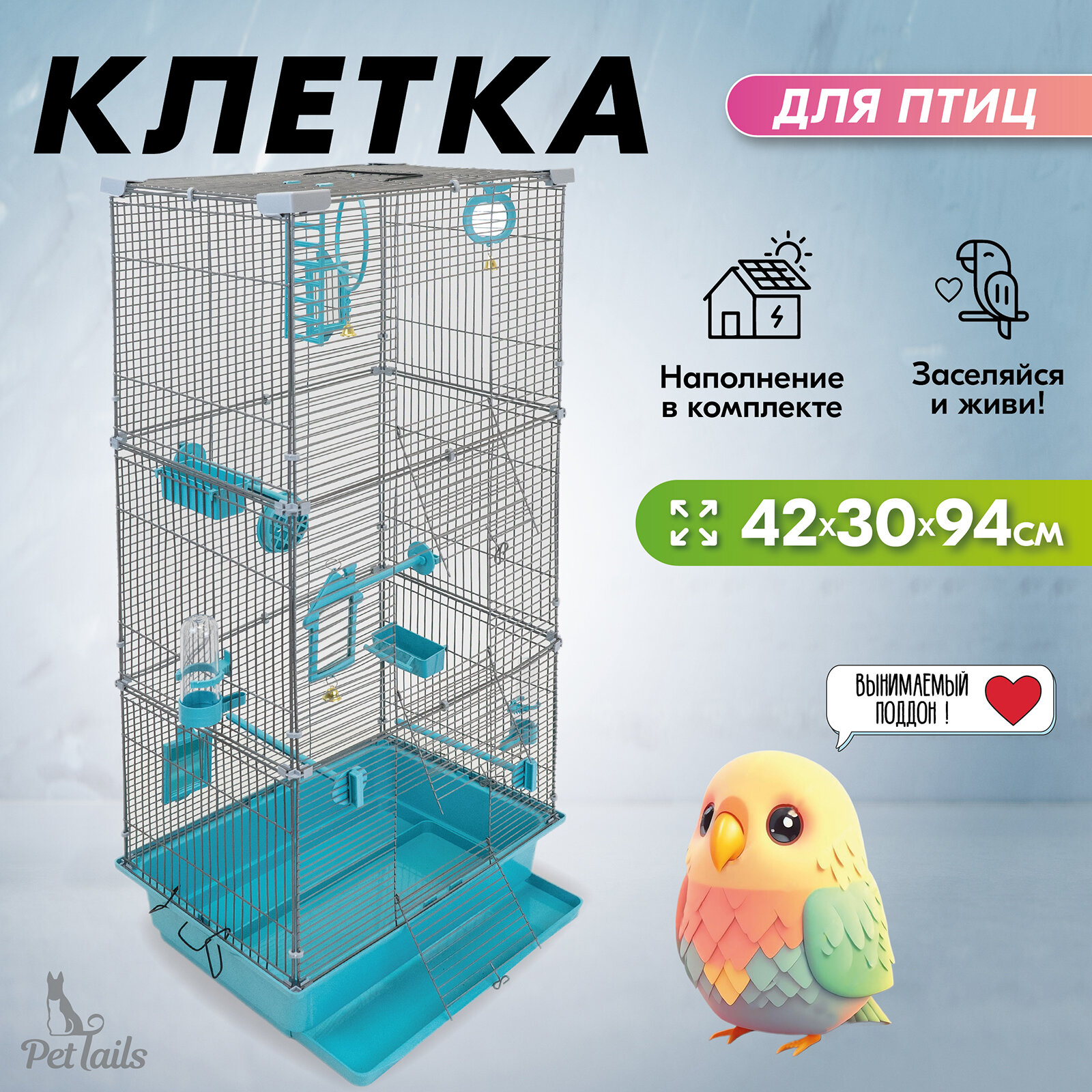 Клетка для птиц разборная "PetTails", шаг прута до 11мм, 42*30*h94см, бирюзовая интересное: