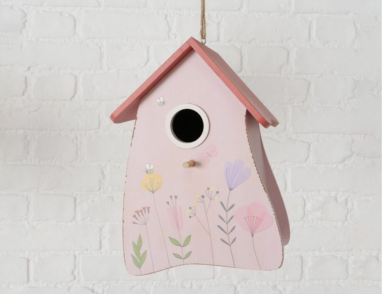 Купить Подвесное декоративное украшение скворечник - дыхание весны, дерево (МДФ), розовый, 22 см, Boltze