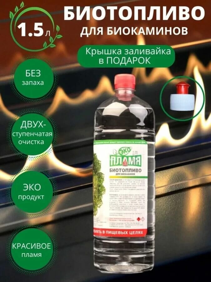 1.5 литра / Биотопливо для камина / ЭКО Пламя / Двойной очистки / Без запаха интересное:
