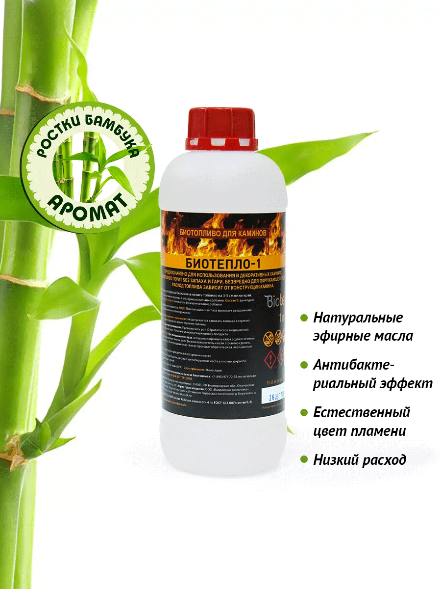 Биотопливо для биокаминов Биотепло-1, с ароматом "Ростки бамбука" 1 литр интересное: