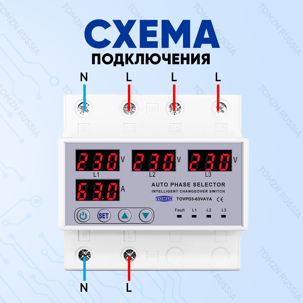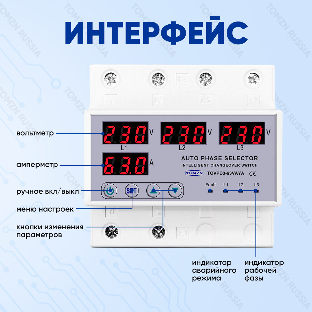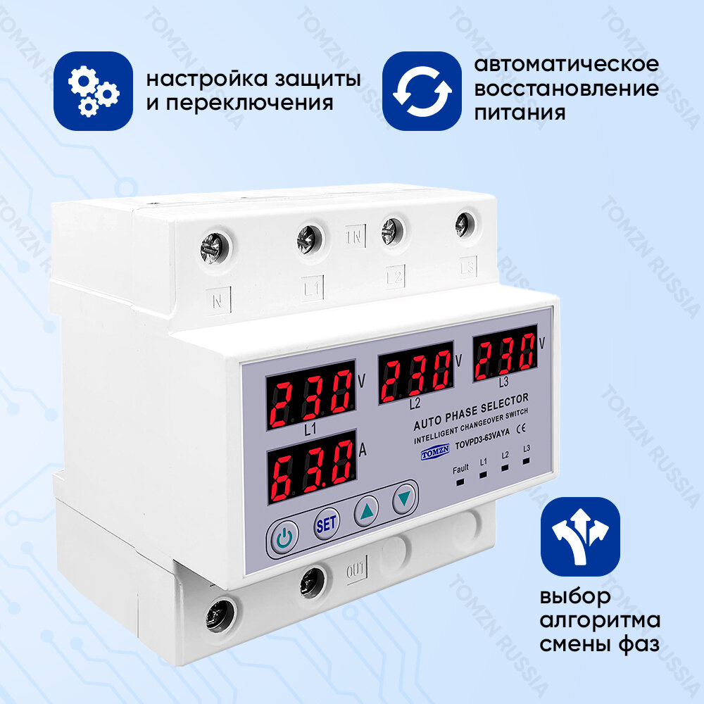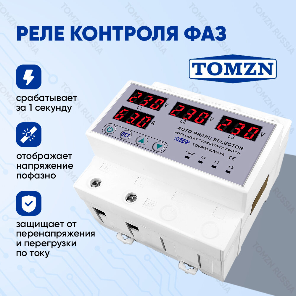 Автоматический переключатель фазы TOMZN TOVPD3-63VAYA 4P / Реле контроля фаз / Фазоискатель интересное: