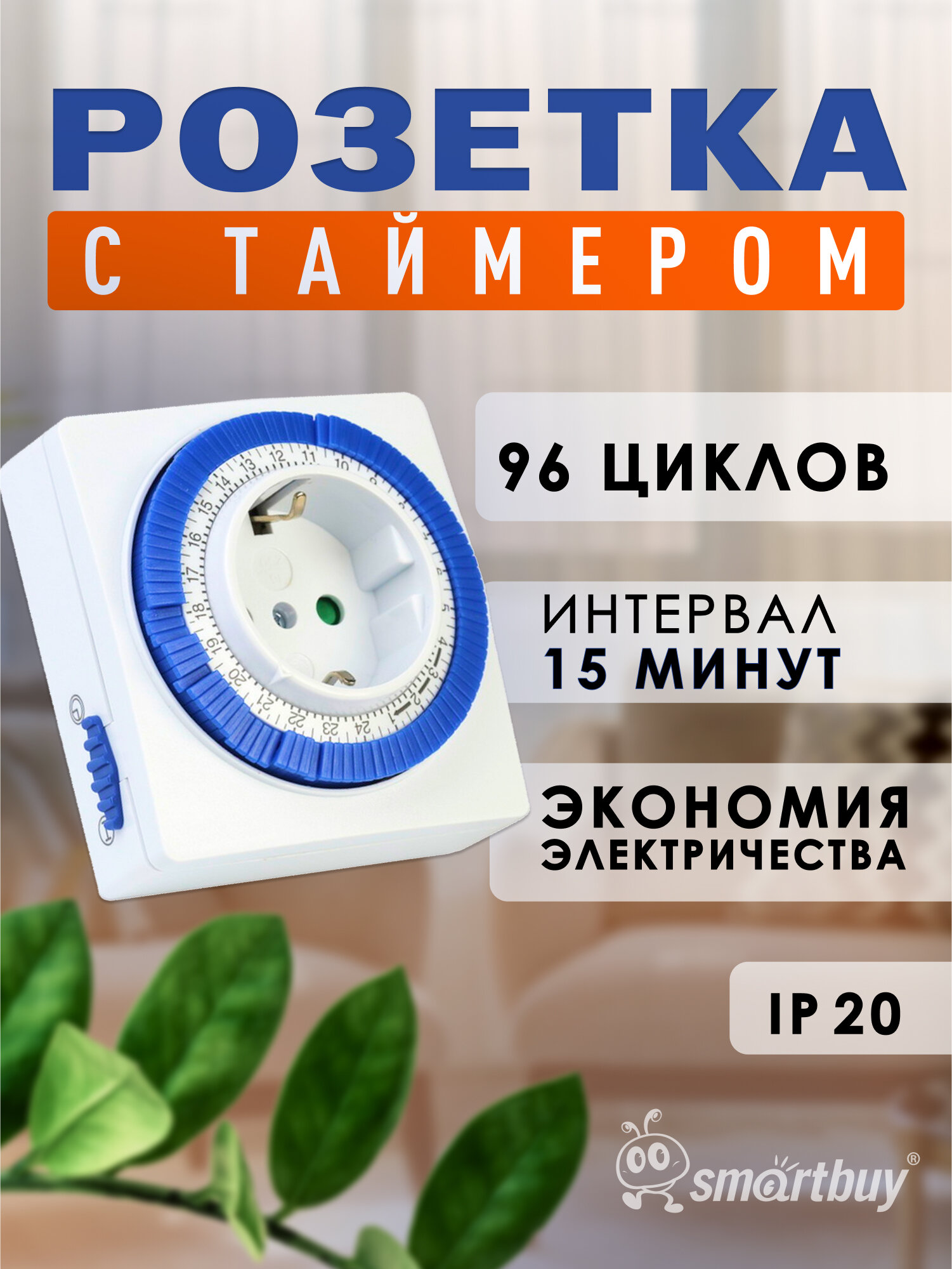 Розетка с таймером механическим 3600Вт, 96 вкл./выкл. сутки, интервал 15 мин., SmartBuy интересное: