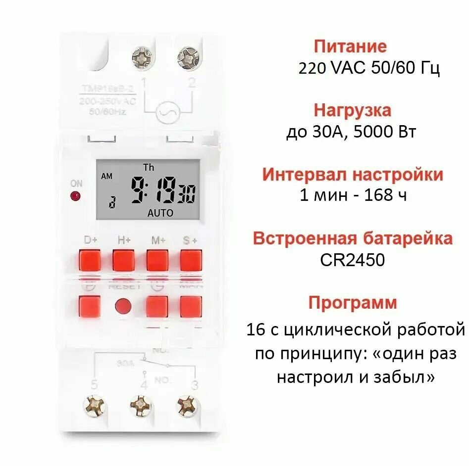 Таймер THC30S 30А доставка из россии не Из-за рубежа, электронный программируемый (реле времени) 220 вольт, до 5000 Вт - электродвигатели, освещение, логические тех. процессы, таймер на дин рейку. интересное:
