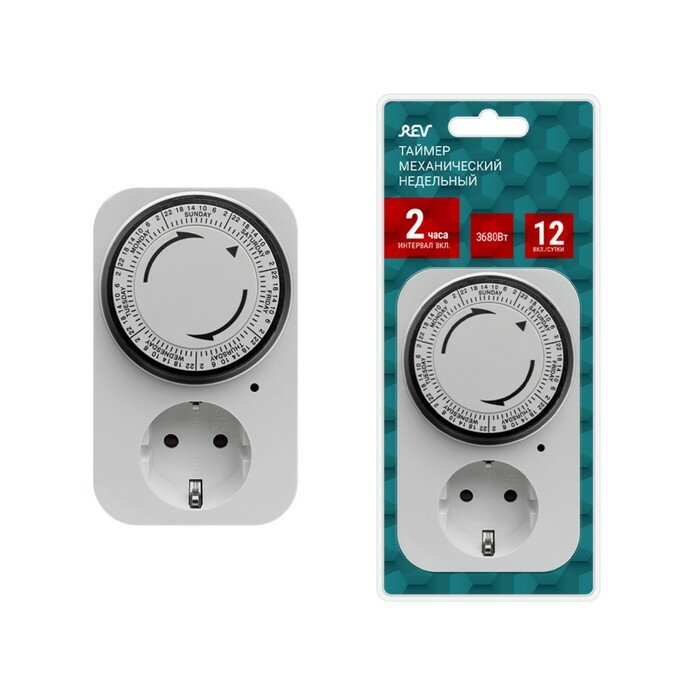 Таймер механический, 'Премиум', недельный 3680Вт, интервал: 120мин. 12 вкл/сутки белый, 0516 9905247 интересное: