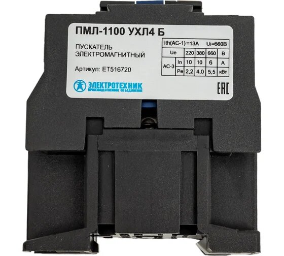 Пускатель электромагнитный ПМЛ-1100 УХЛ4 Б, 110В/50Гц, 1з, 10А, нереверсивный, без реле, IP00 (ЭТ), ET516720, ПО Электротехник интересное: