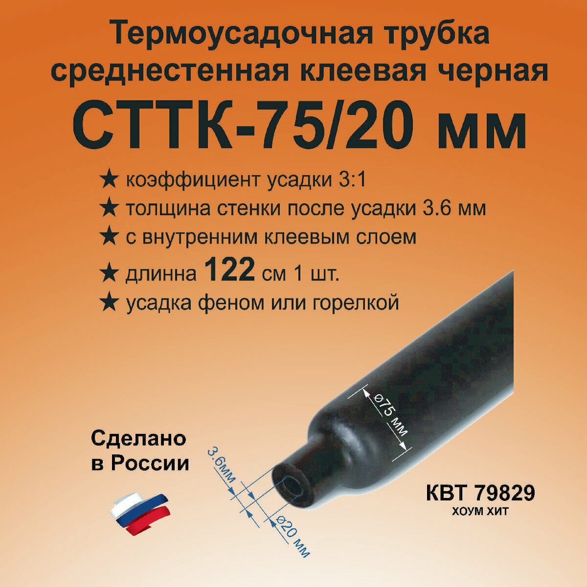 Купить Термоусадка для проводов, черная 75/20 мм, термоусадочная трубка с клеевым слоем для электрики и рыбалки