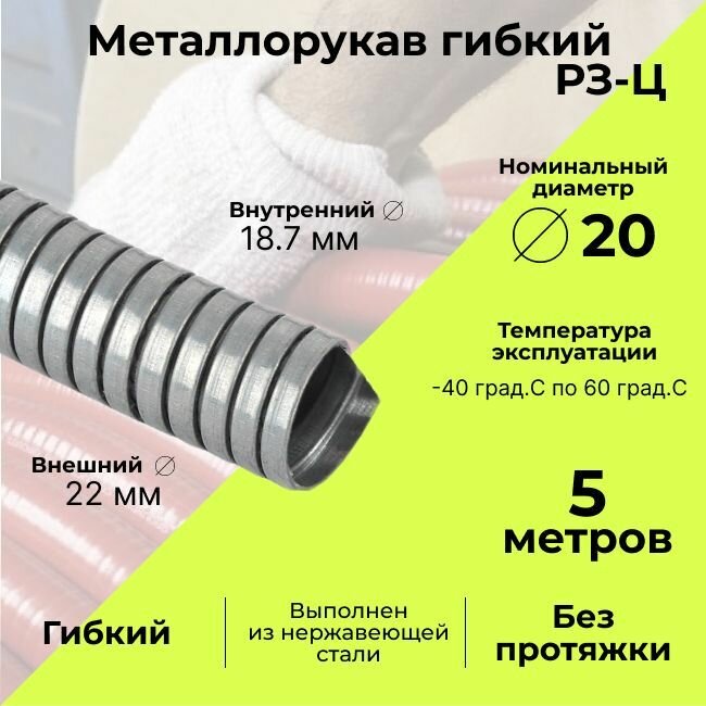 Купить Металлорукав для кабеля оцинкованный Р3 - Ц - 20 D20мм серый - 5м