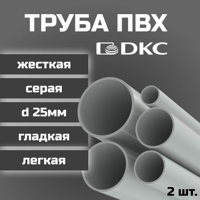 Труба ПВХ DKC гладкая, жесткая, легкая d25мм серая L1000 2шт.