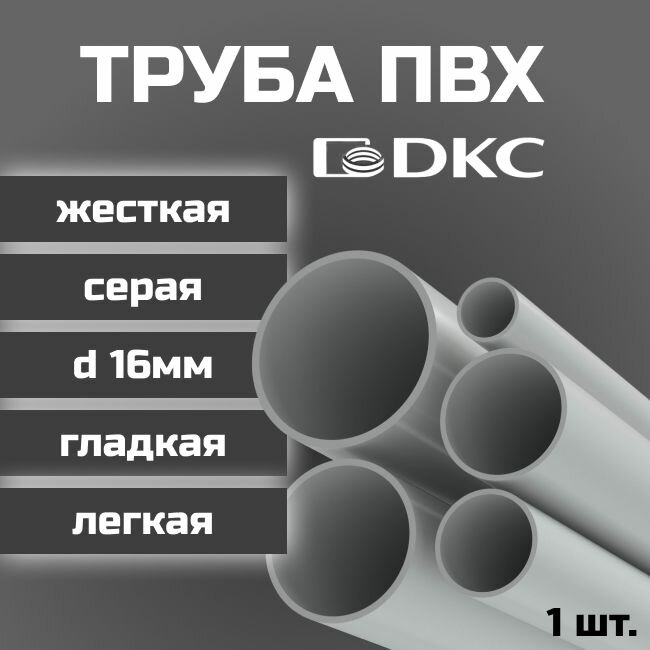 Труба ПВХ DKC гладкая, жесткая, легкая d16мм серая L1000 3шт.