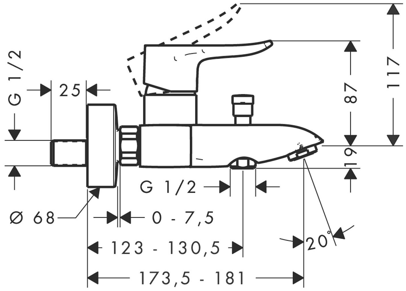 Смеситель Hansgrohe Metris 31480000 для ванны/душа настенный, однозахватный