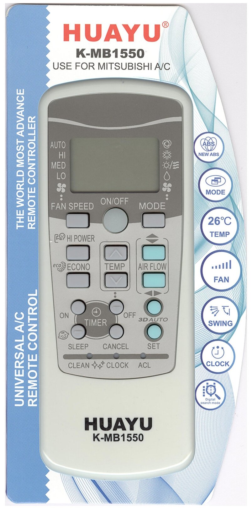 Купить Пульт Huayu K-MB1550 для кондиционеров MITSUBISHI, универсальный
