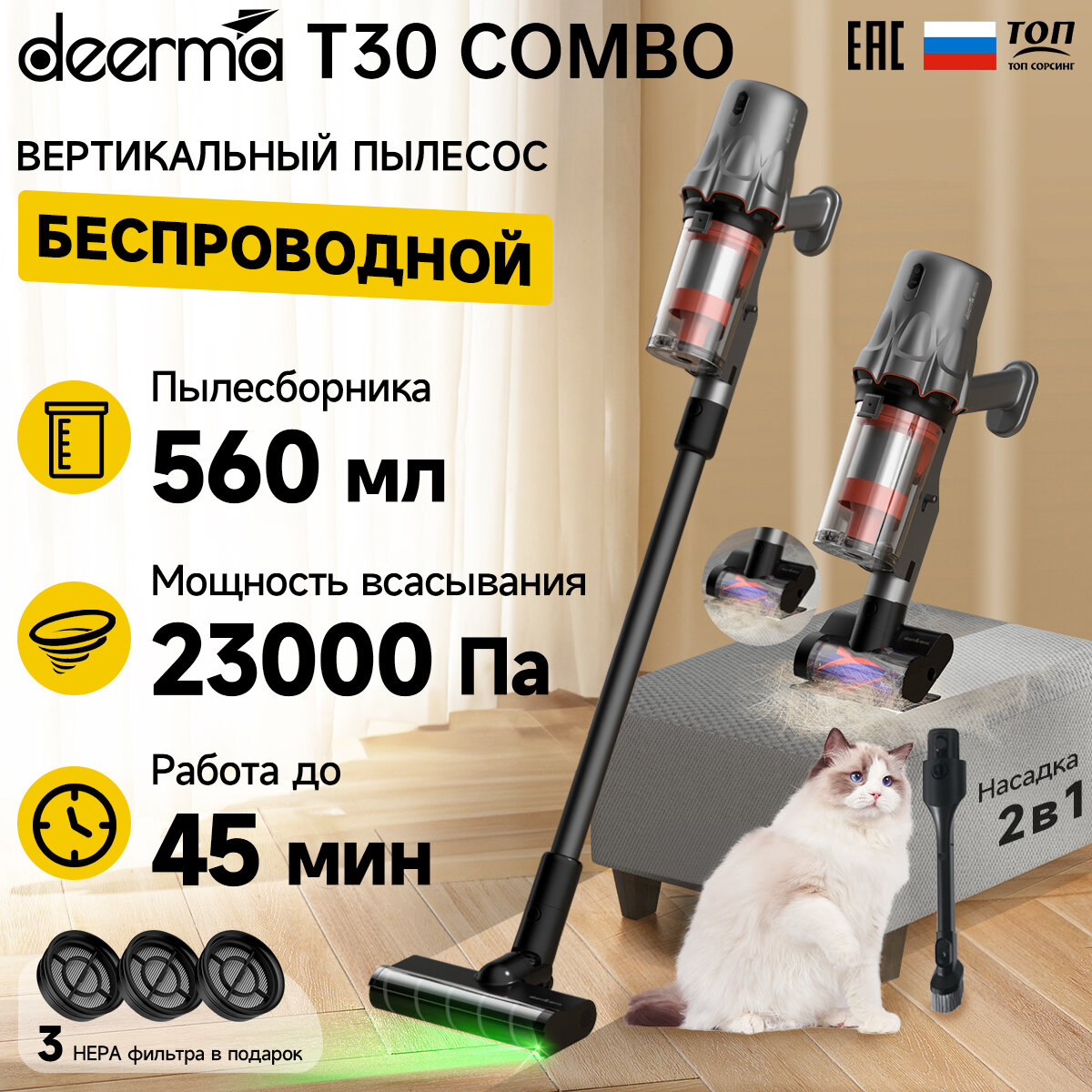 Пылесос ручной (handstick) Deerma Combo DEM-T30W интересное: