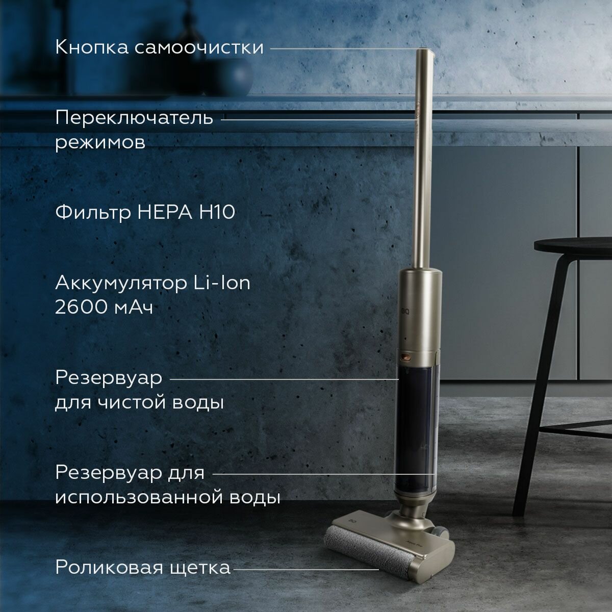 Беспроводной моющий вертикальный пылесос BQ VCA1003W Бронза интересное:
