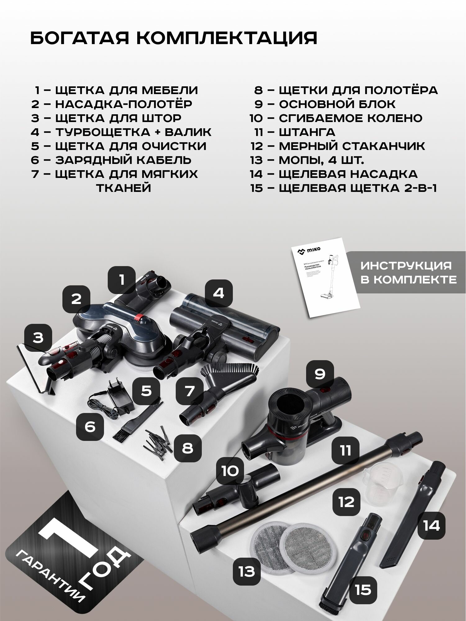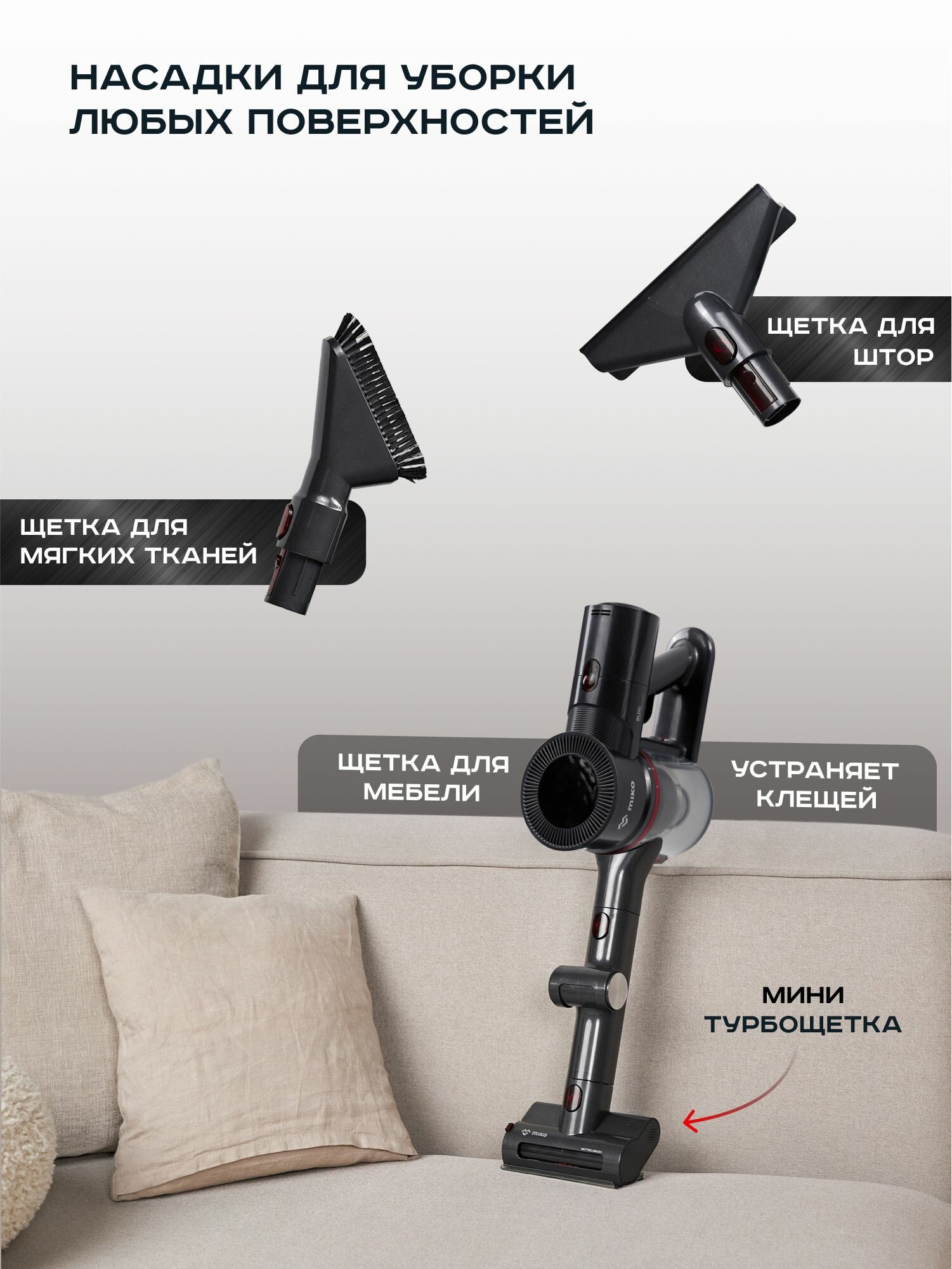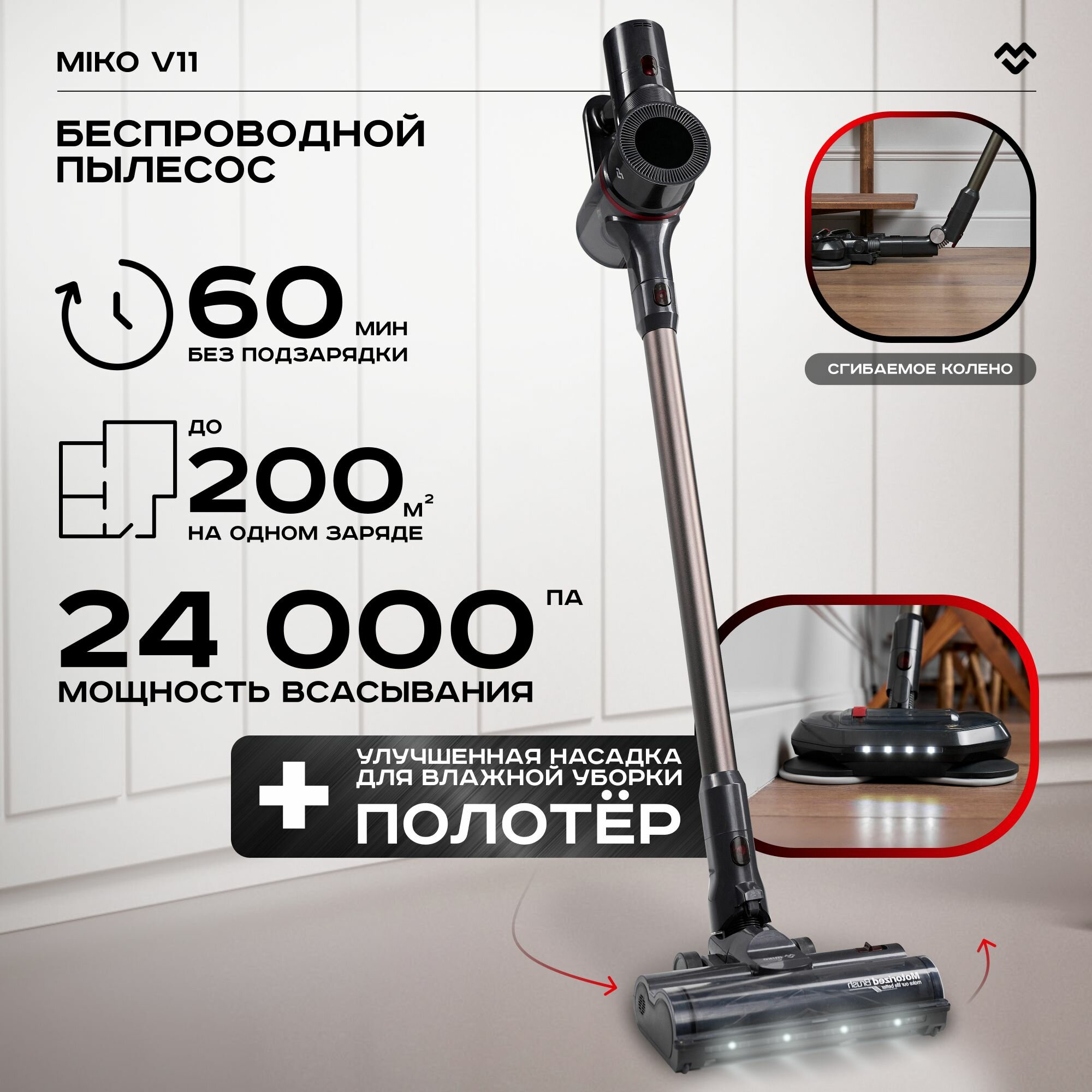 Пылесос вертикальный беспроводной моющий для дома Xiaomi MIKO V11 интересное: