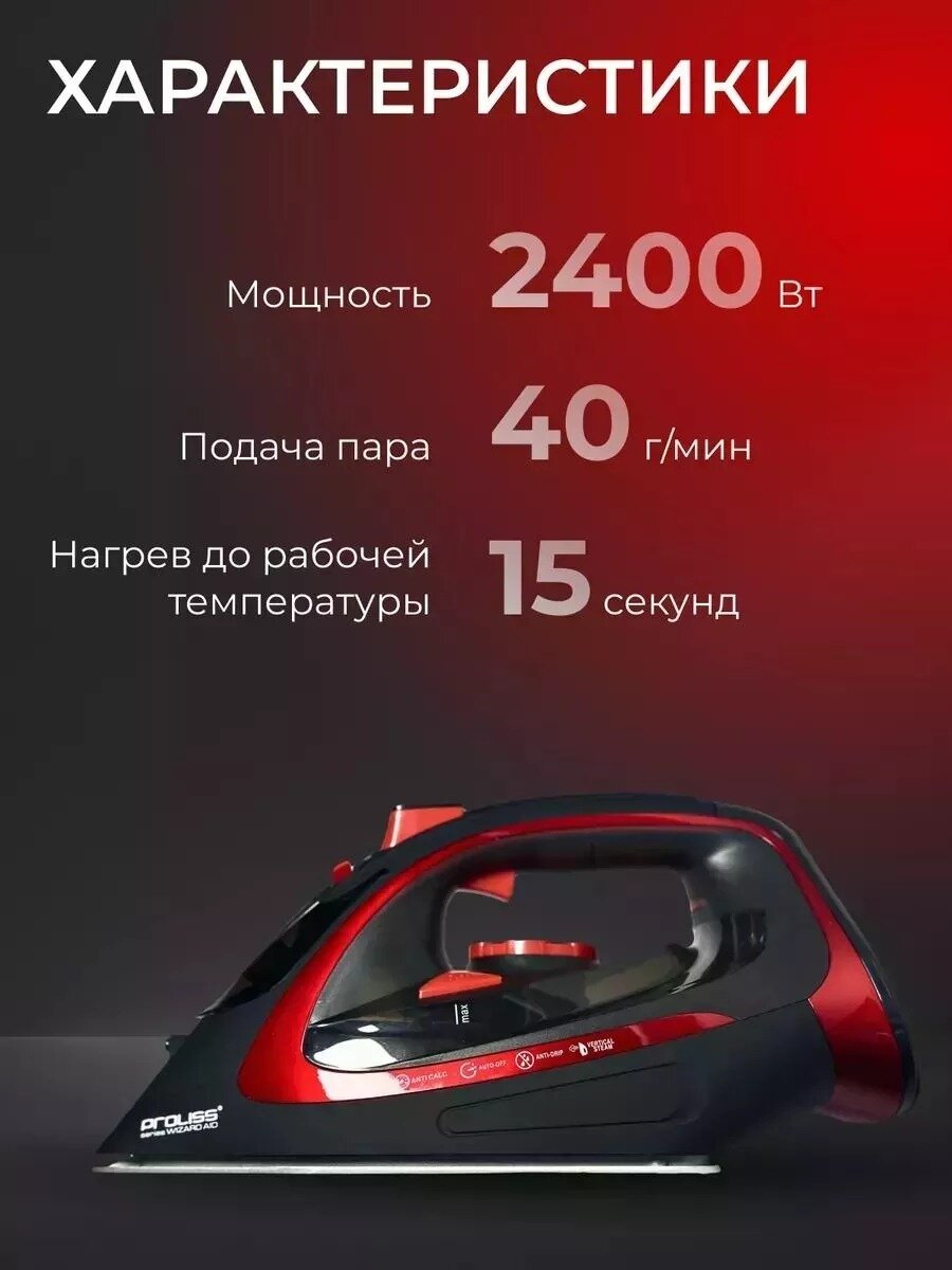 Утюг беспроводной, с функцией вертикальной глажки, паровой удар,домашний,антипригарное покрытие, система самоочистки,2400Вт, черный интересное: