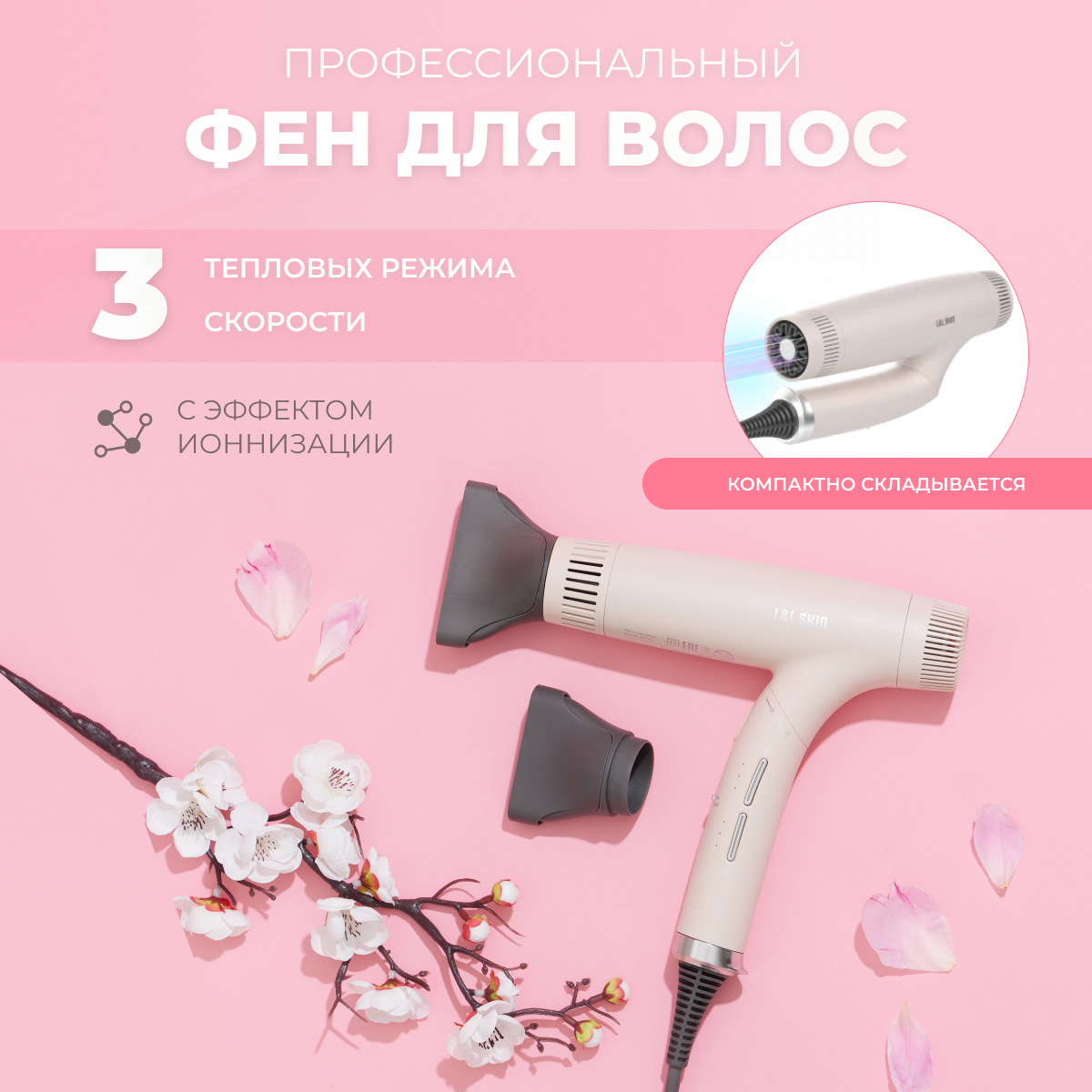 Фен для волос складной с насадками RIKA WAU интересное: