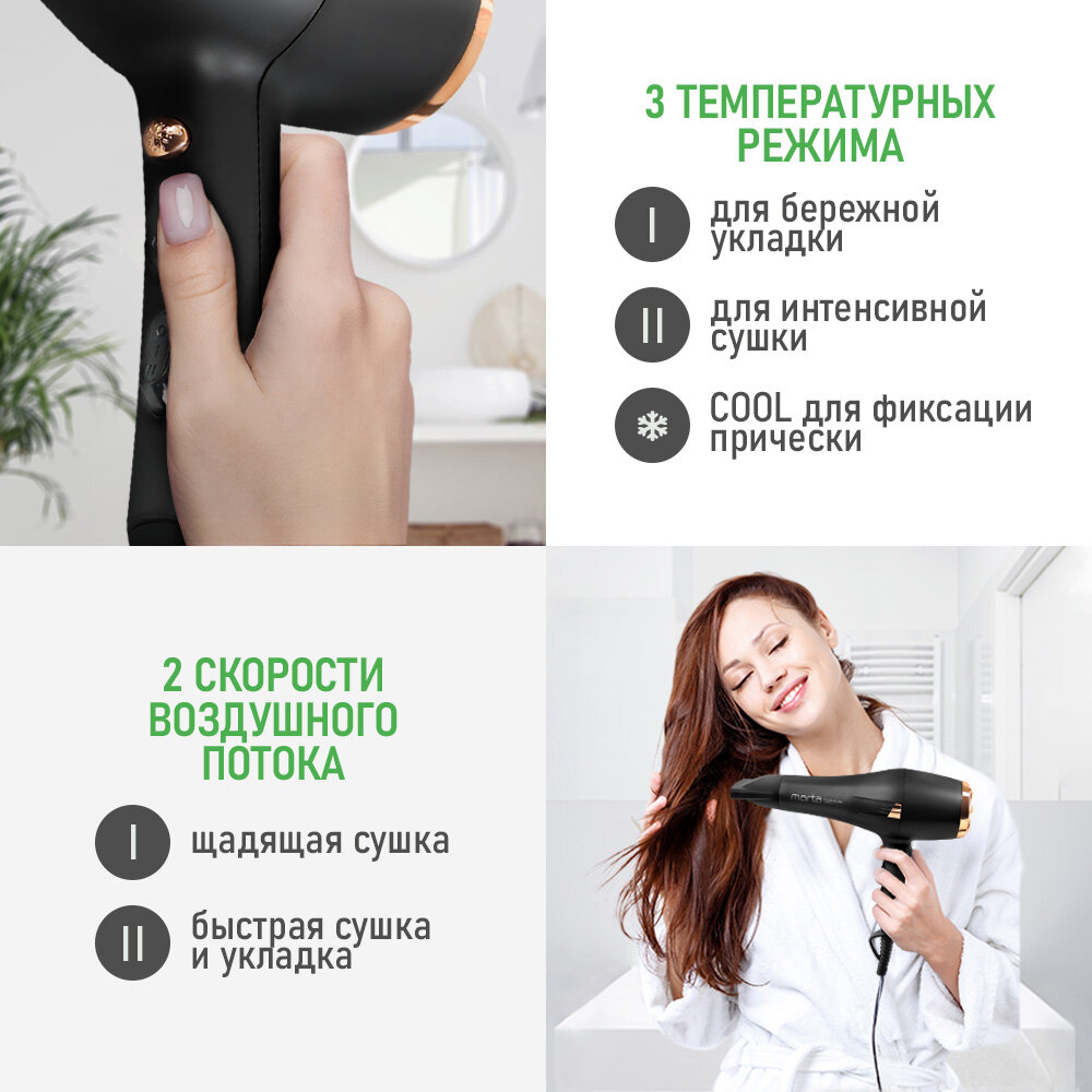Фен MARTA MT-HD1401B черный жемчуг tourmaline ionic интересное: