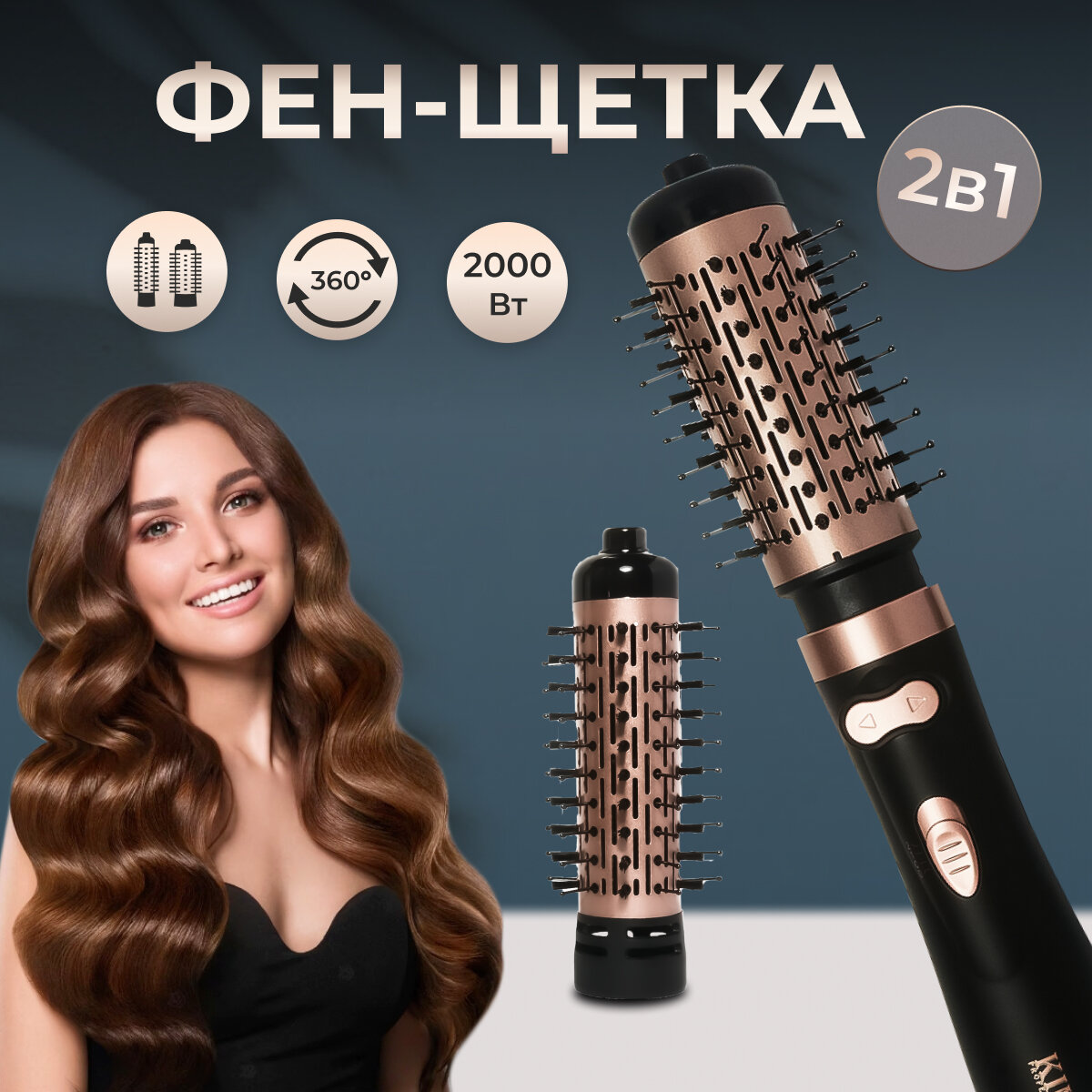 Фен-щетка для укладки волос с вращением King Professional KP-6005, золотистый, черный интересное: