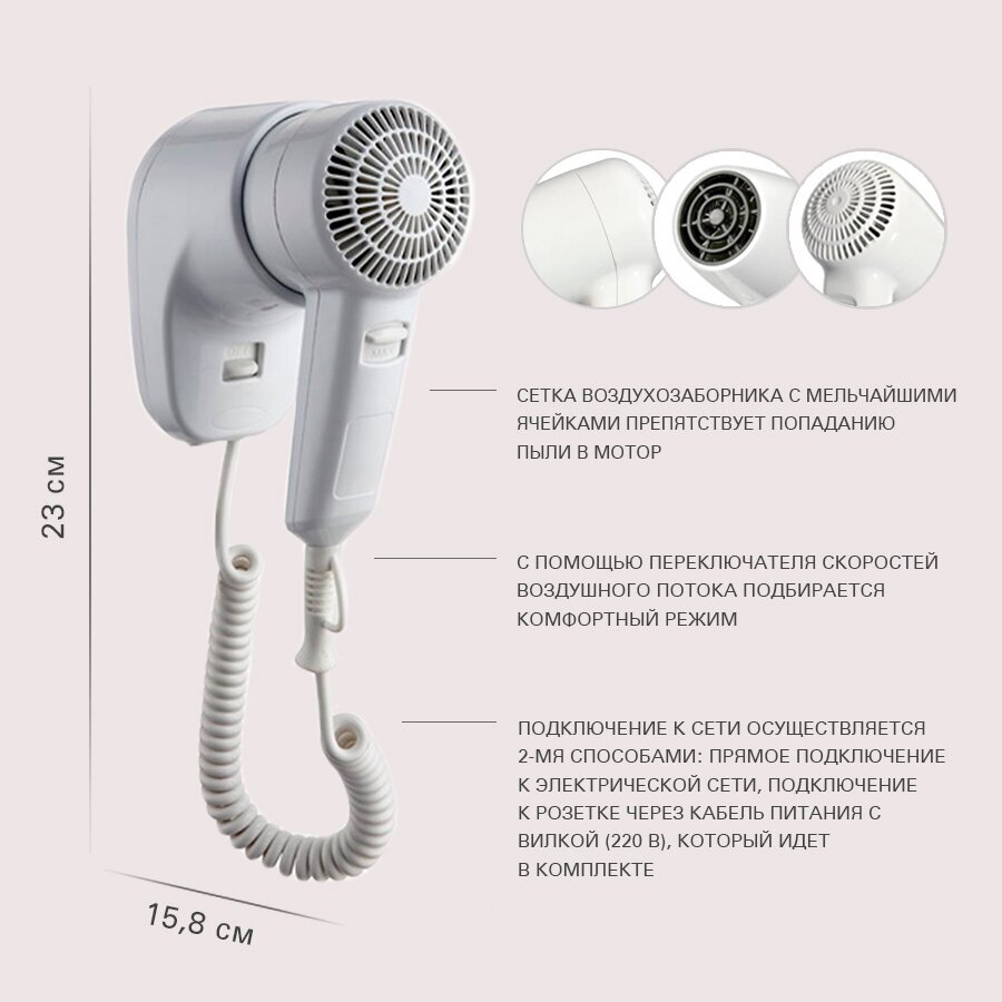 Фен для волос Viatto VA-HDW1200, фен настенный для укладки, для сушки, фен для гостиниц и отелей c настенным креплением, приборы для укладки интересное: