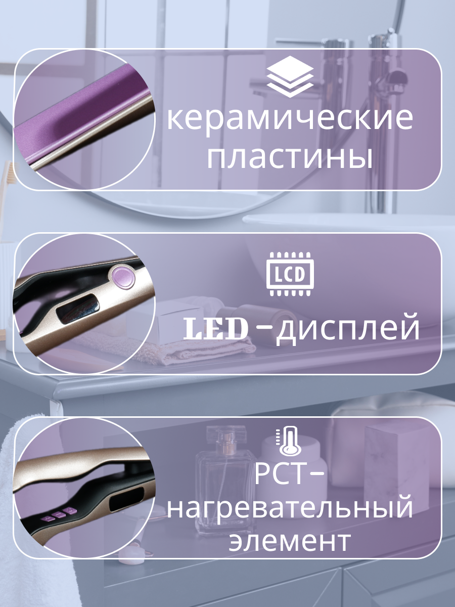 | Особенности | вращение шнура / дисплей / индикация включения / индикация готовности к работе / ненагревающийся наконечник / петля для подвешивания / плавающие пластины |