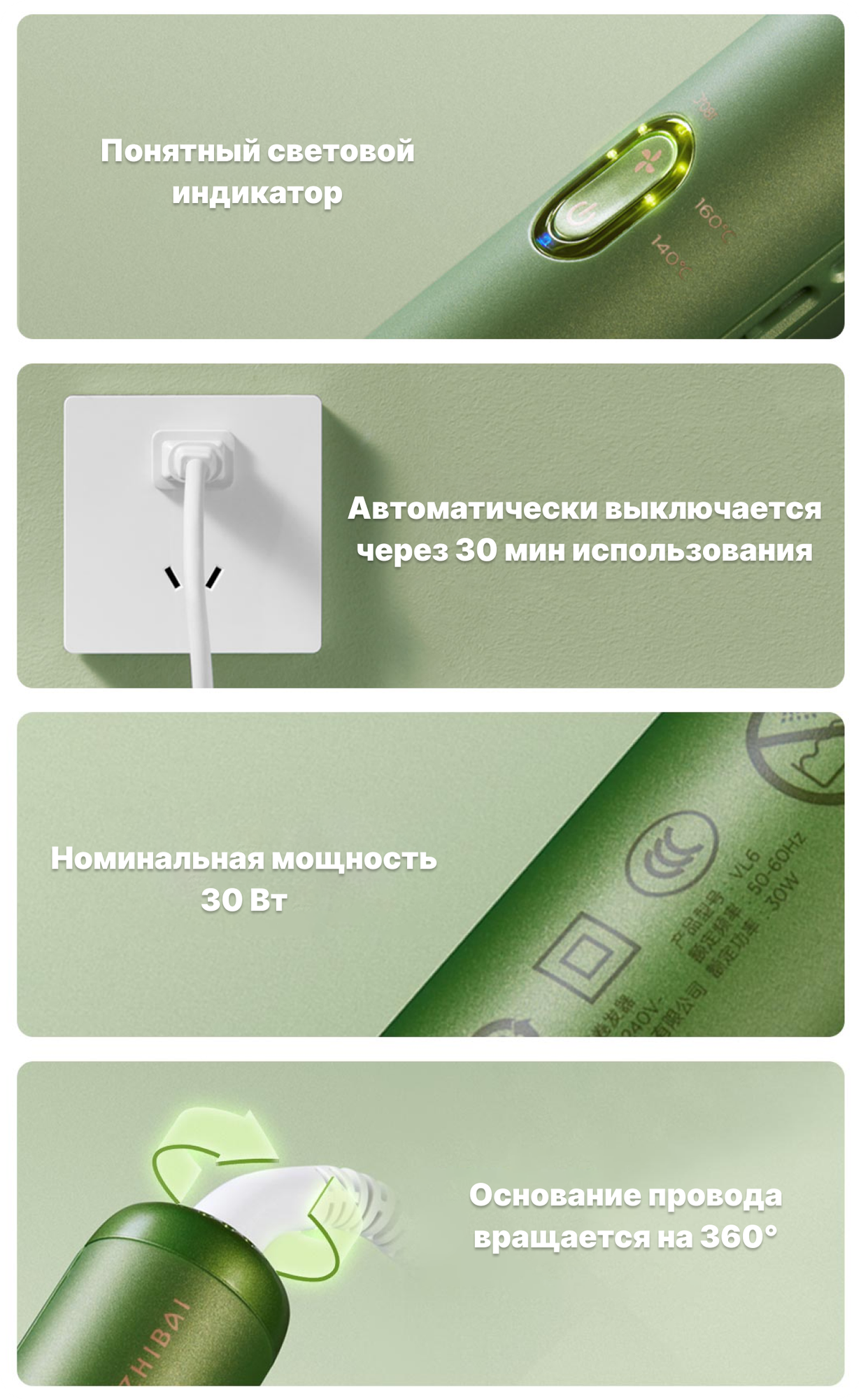 Выпрямитель для волос Xiaomi Zhibai Hot Steam Hair Straightener Green (VL6) интересное: