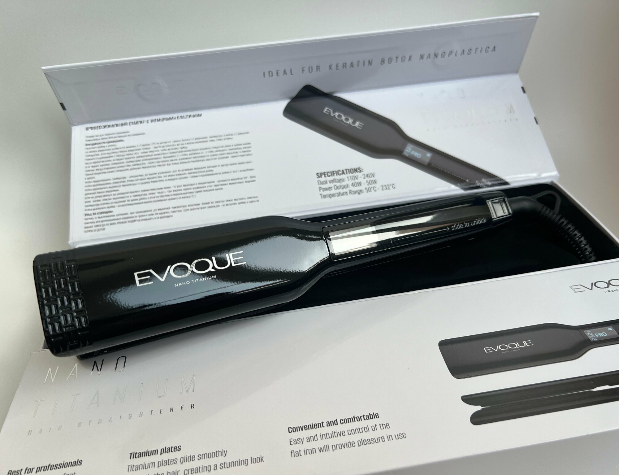Утюжок EVOQUE выпрямитель с широкими пластинами TouchScreen Nano Titanium Wide черный интересное: