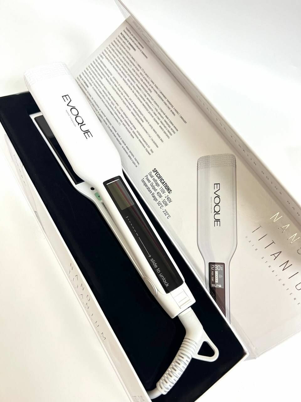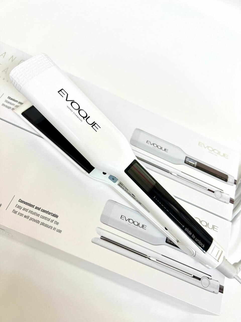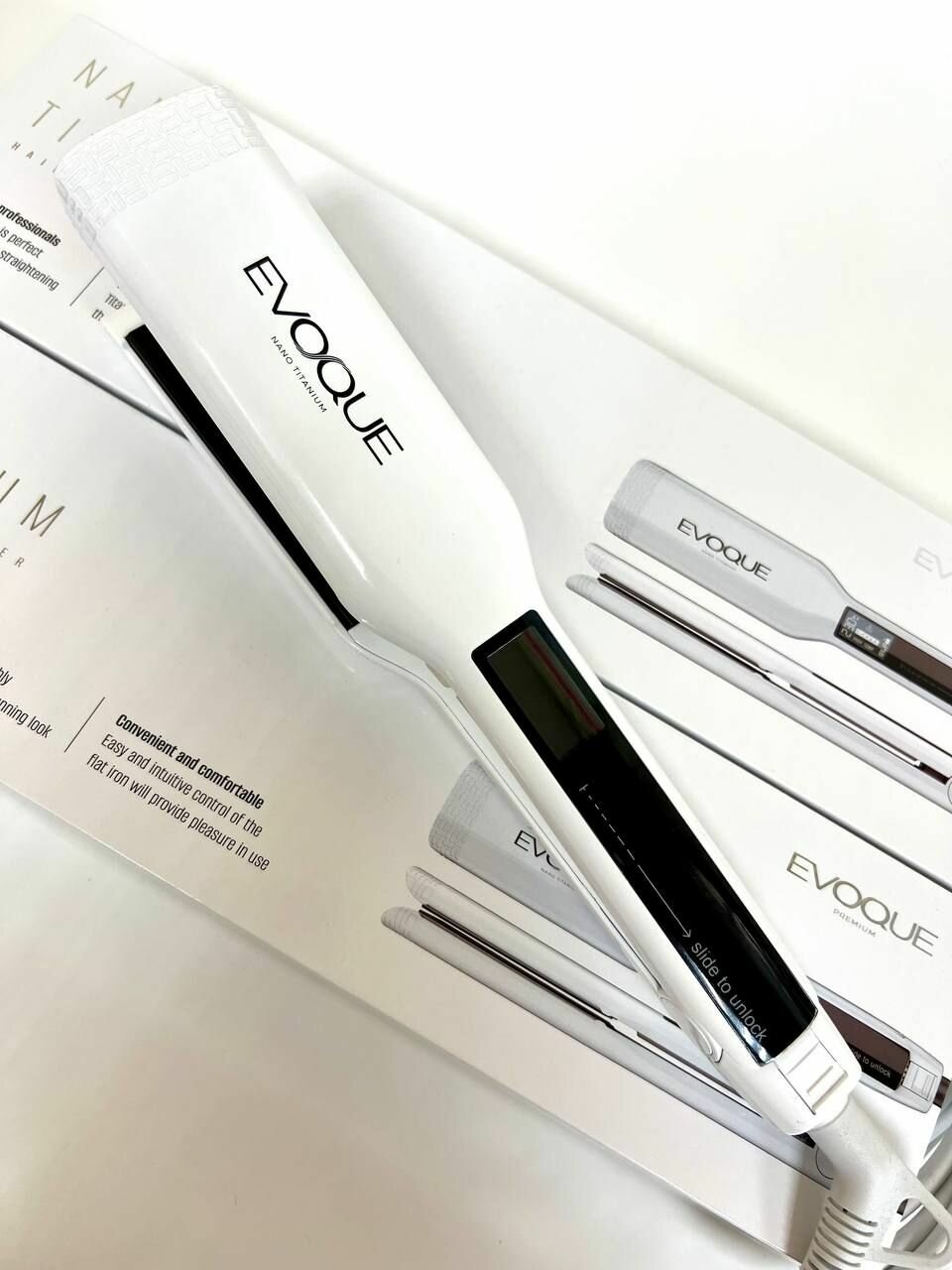 Утюжок EVOQUE выпрямитель с широкими пластинами TouchScreen Nano Titanium Wide белый интересное: