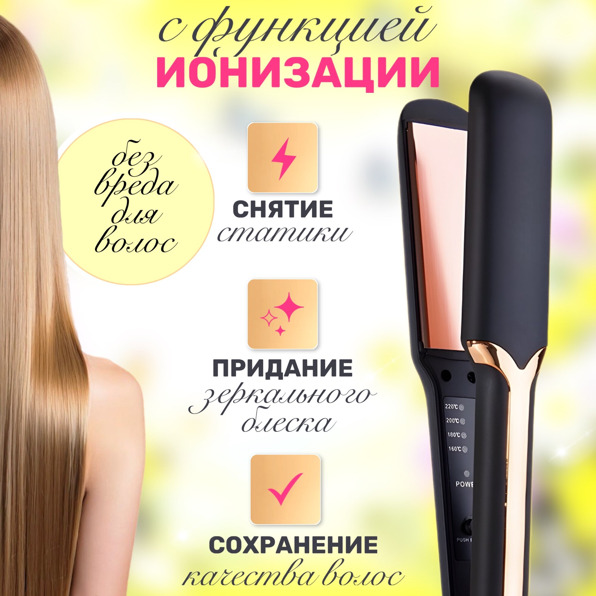 Выпрямитель для волос профессиональный, утюжок для выпрямления с ионизацией с керамическими пластинами, стайлер интересное: