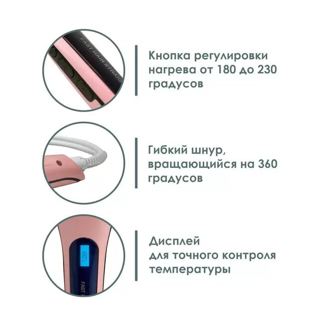 | Дополнительная информация | Пользоваться расческой просто – кнопка для включения ее находится сбоку, на корпусе. Эта же кнопка устанавливает температуру, а на маленьком табло можно посмотреть величину нагрева. Нужная вам температура появится всего за несколько секунд и сохраниться на протяжении всего времени работы устройства. |