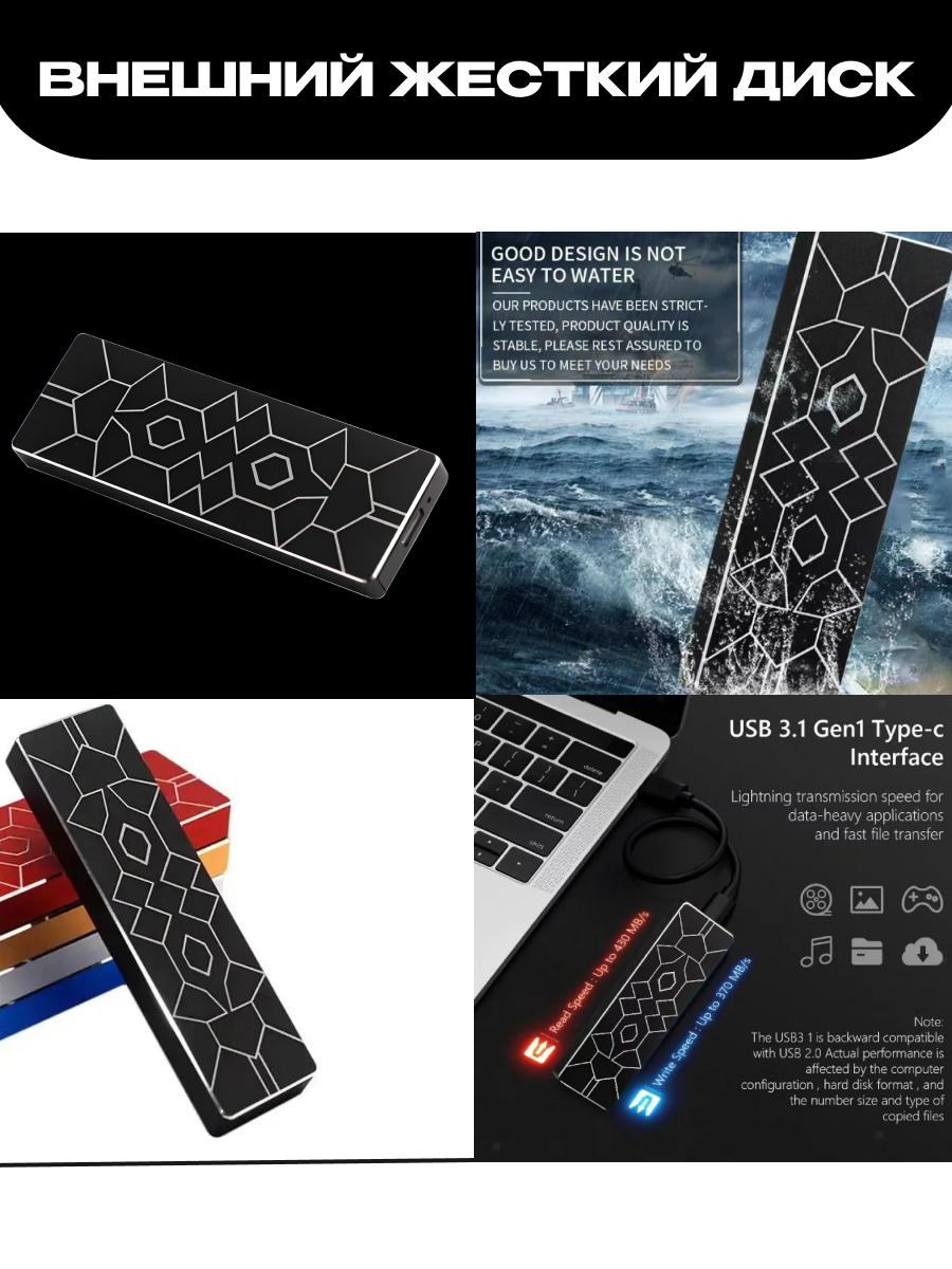 Жесткий внешний диск 1Tb, с рисунком, Разъем Type-C интересное: