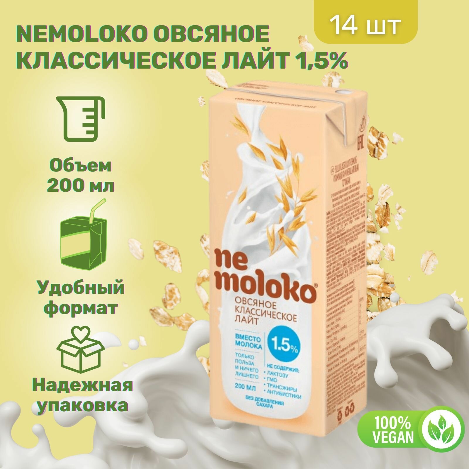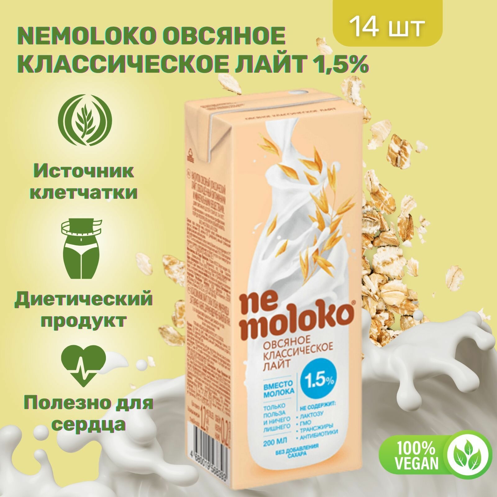 Напиток Nemoloko Овсяный Классический лайт 1,5% 200 мл х 14 шт