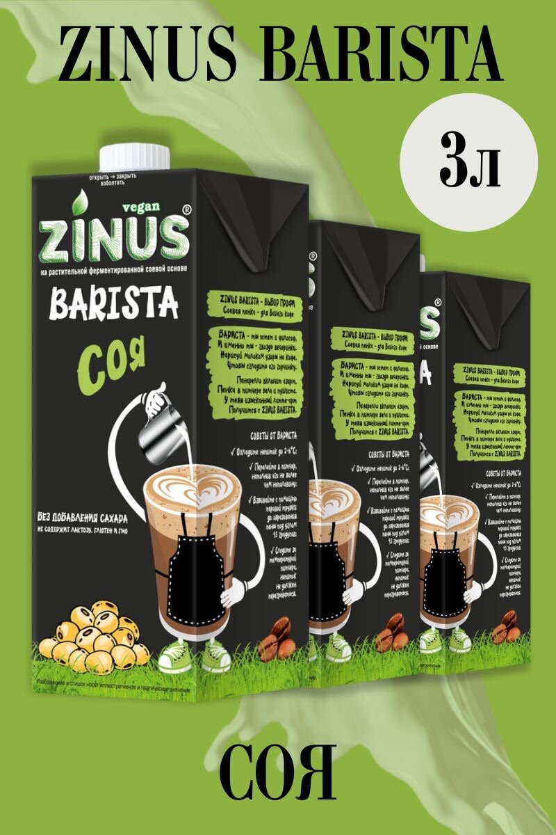 СохранитьZinus Молоко Соевое, Продукт на растительном сырье, Напиток соевый, (зинус) Barista (бариста) соя 1 л/ спайка 3 шт/в наборе интересное: