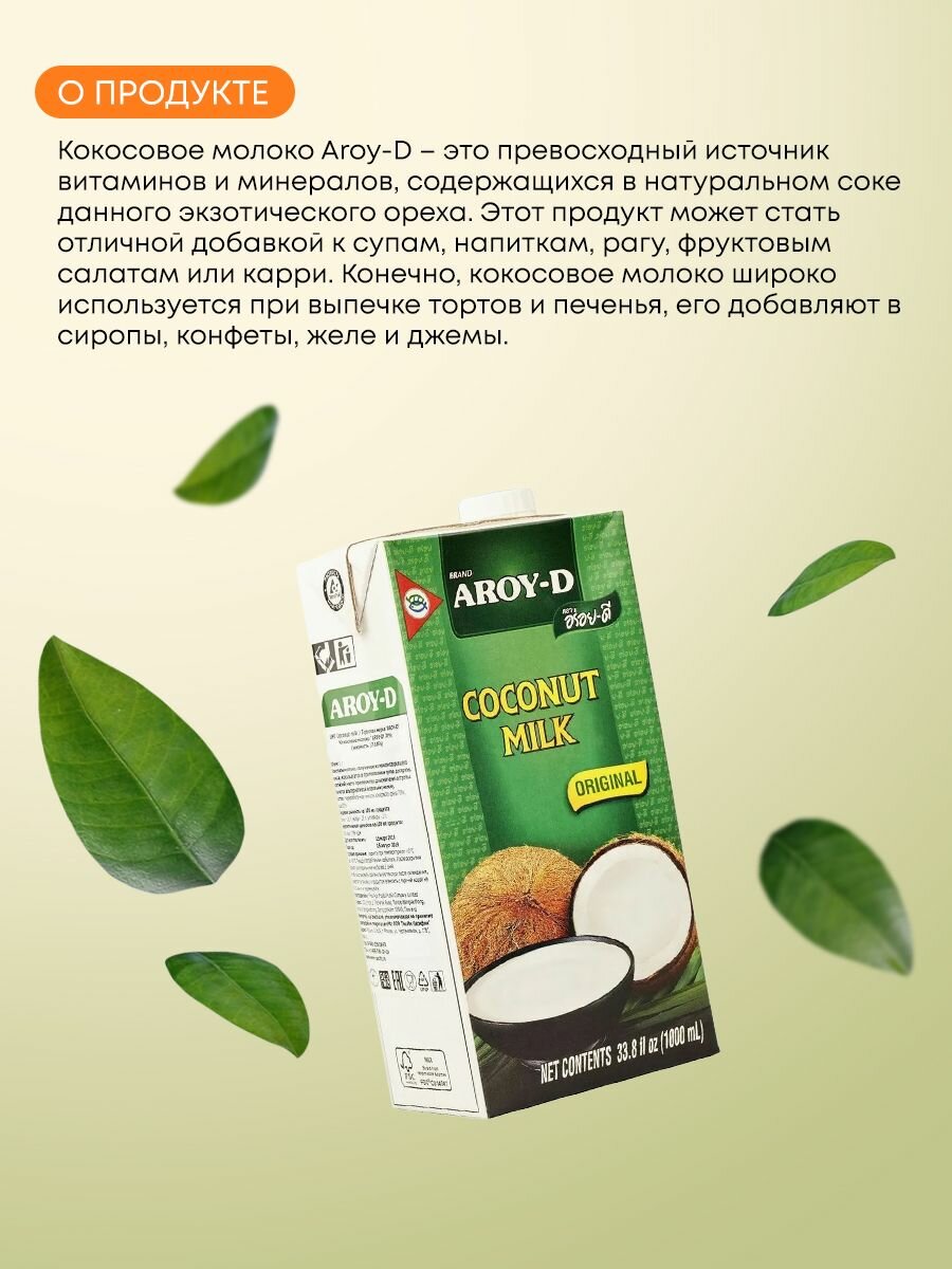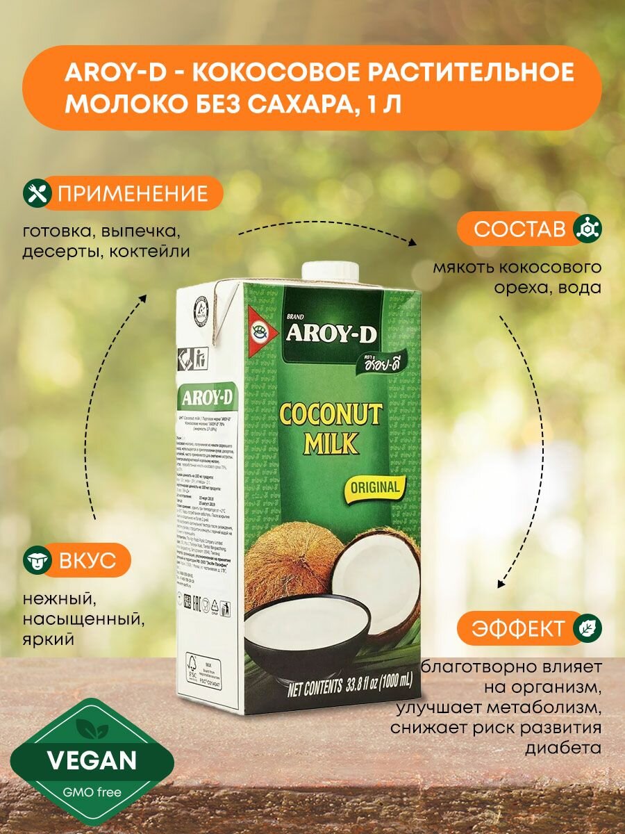 Кокосовое растительное молоко Aroy-D без сахара, заменитель молока, натуральное, 1л интересное: