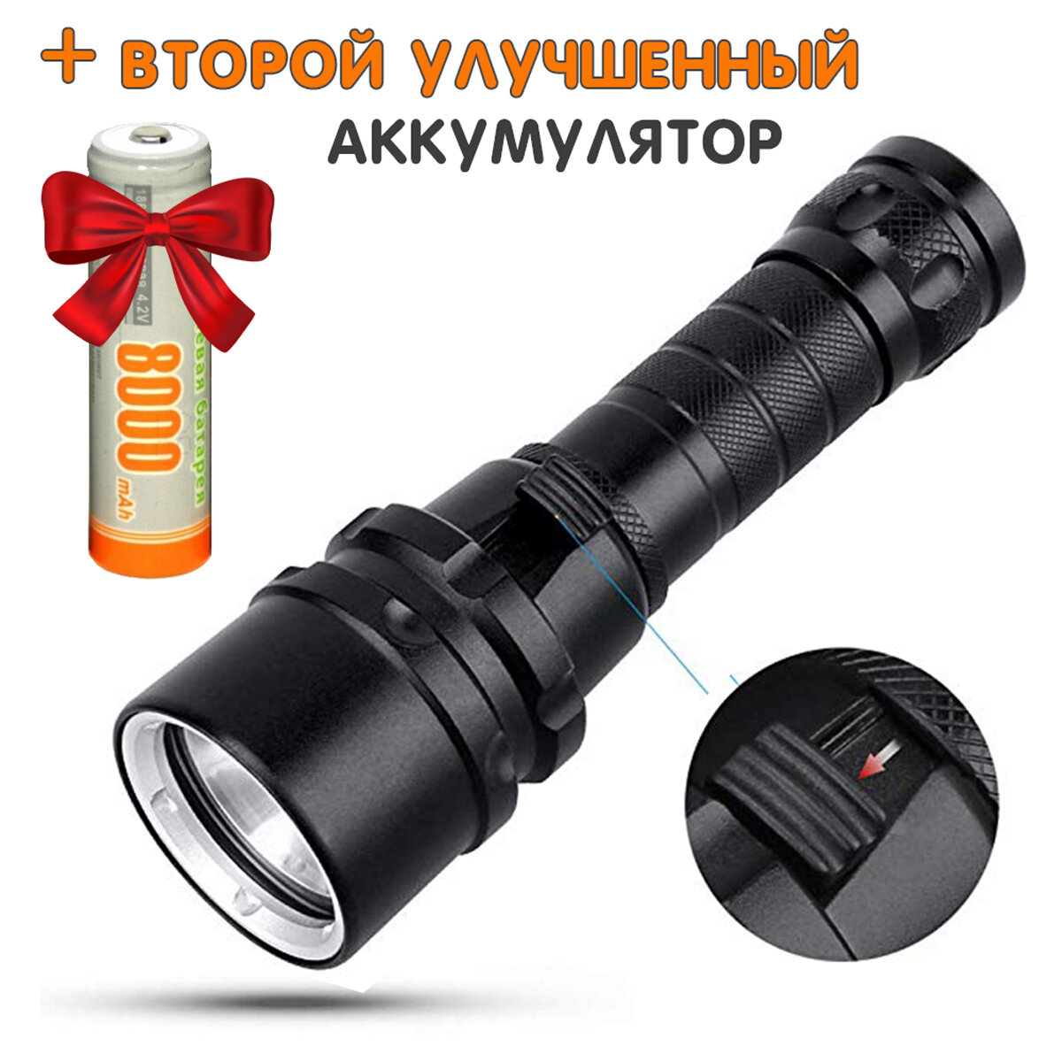 Фонарь сверхъяркий подводный Огонь H-618-T6 / Теплый желтый свет / Аккумуляторный / Водонепроницаемый / Для дайвинга и охоты интересное: