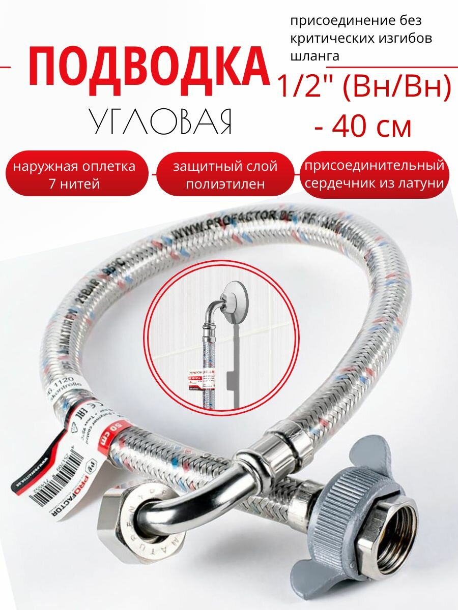 Гибкая подводка для воды с угловым отводом, 1/2" (Вн/Вн) - 40 см, LUXe ProFactor. PF WFH 527.40 интересное: