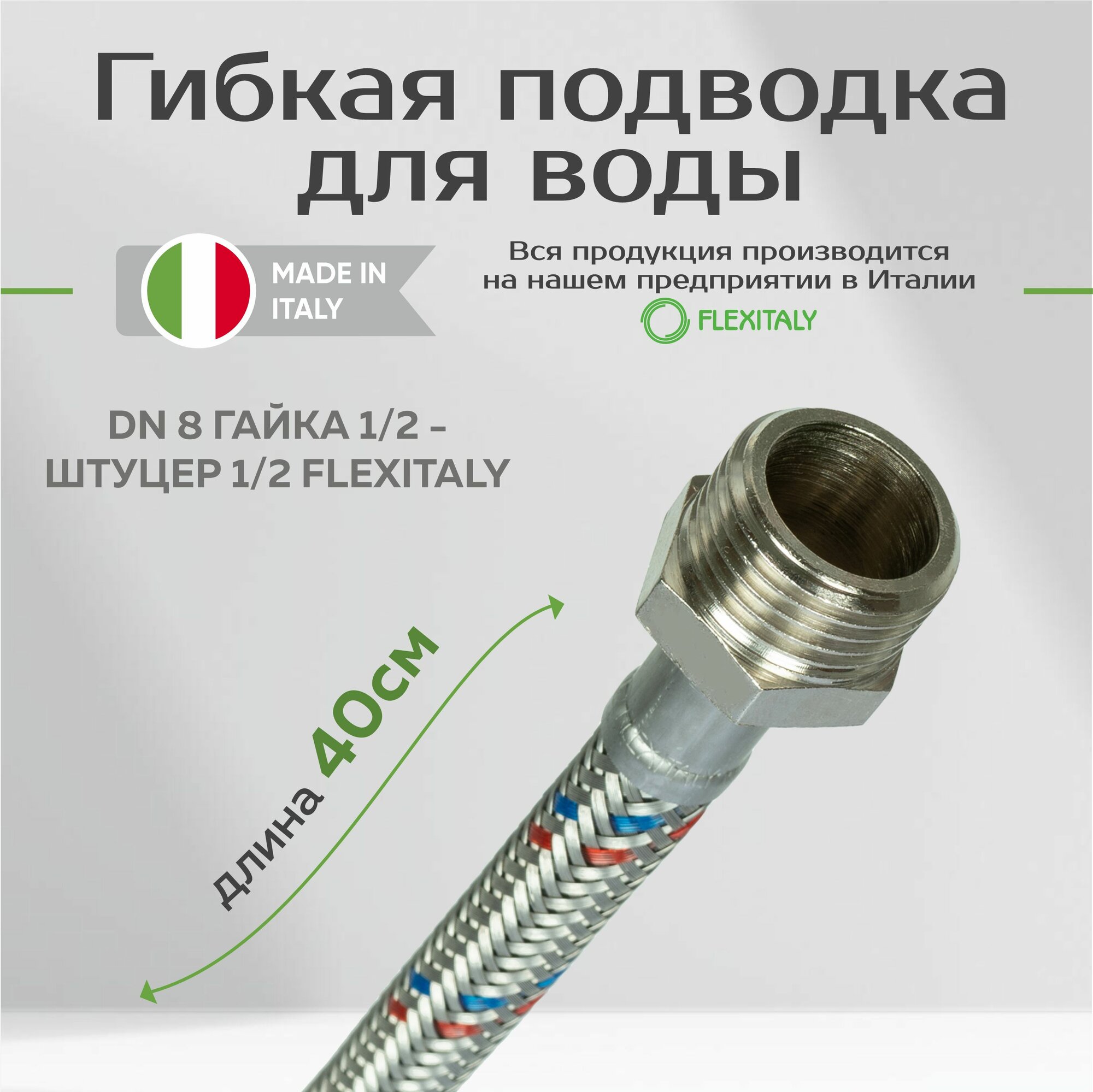Гибкая подводка для воды DN 8 гайка-штуцер Flexitaly 40 см интересное: