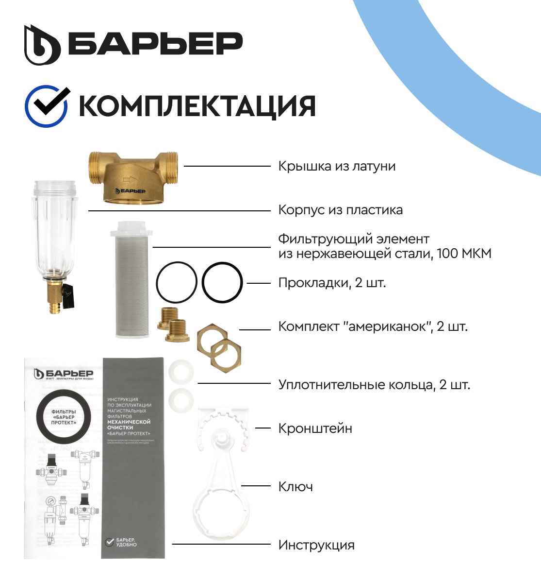 БАРЬЕР протект 1/2", сетчатый магистральный фильтр для очистки воды, грязевик для холодной воды, 100 мкм интересное: