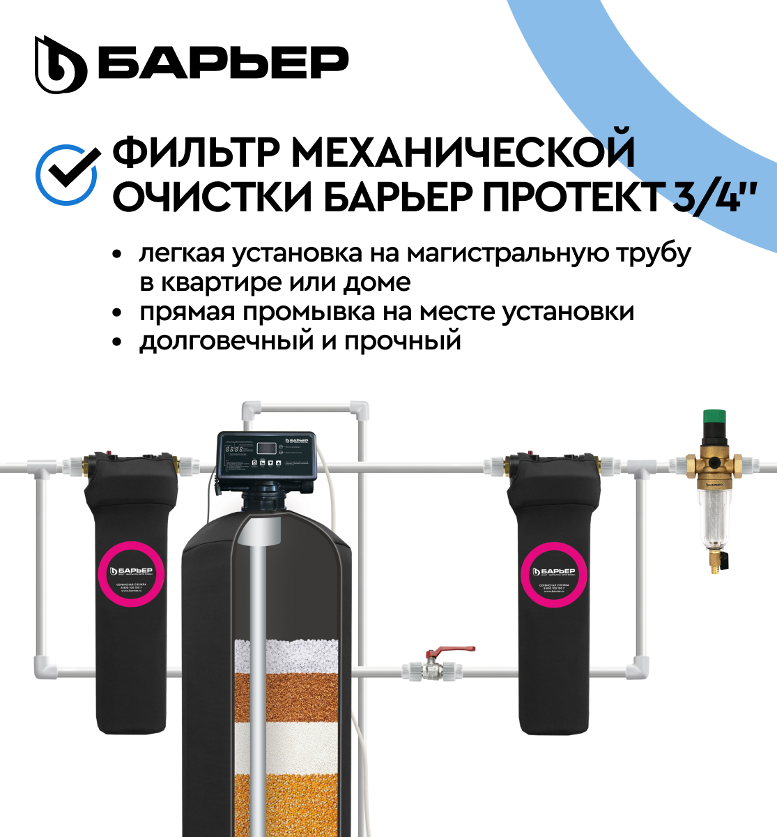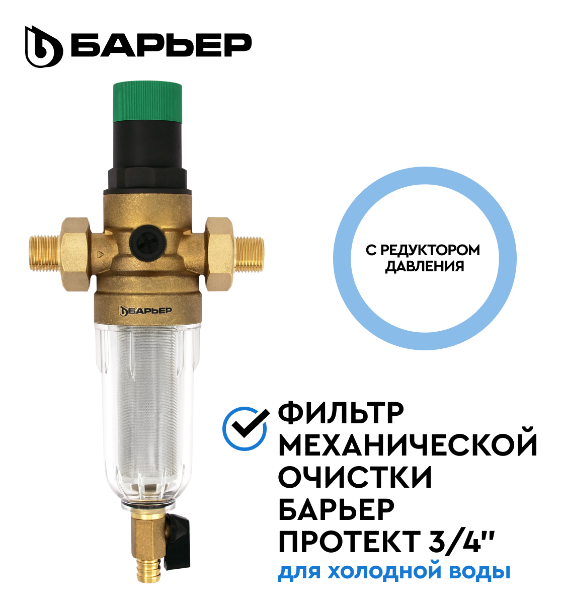 БАРЬЕР протект 3/4" с редуктором давления, сетчатый магистральный фильтр для очистки воды, грязевик для холодной воды, 100 мкм интересное: