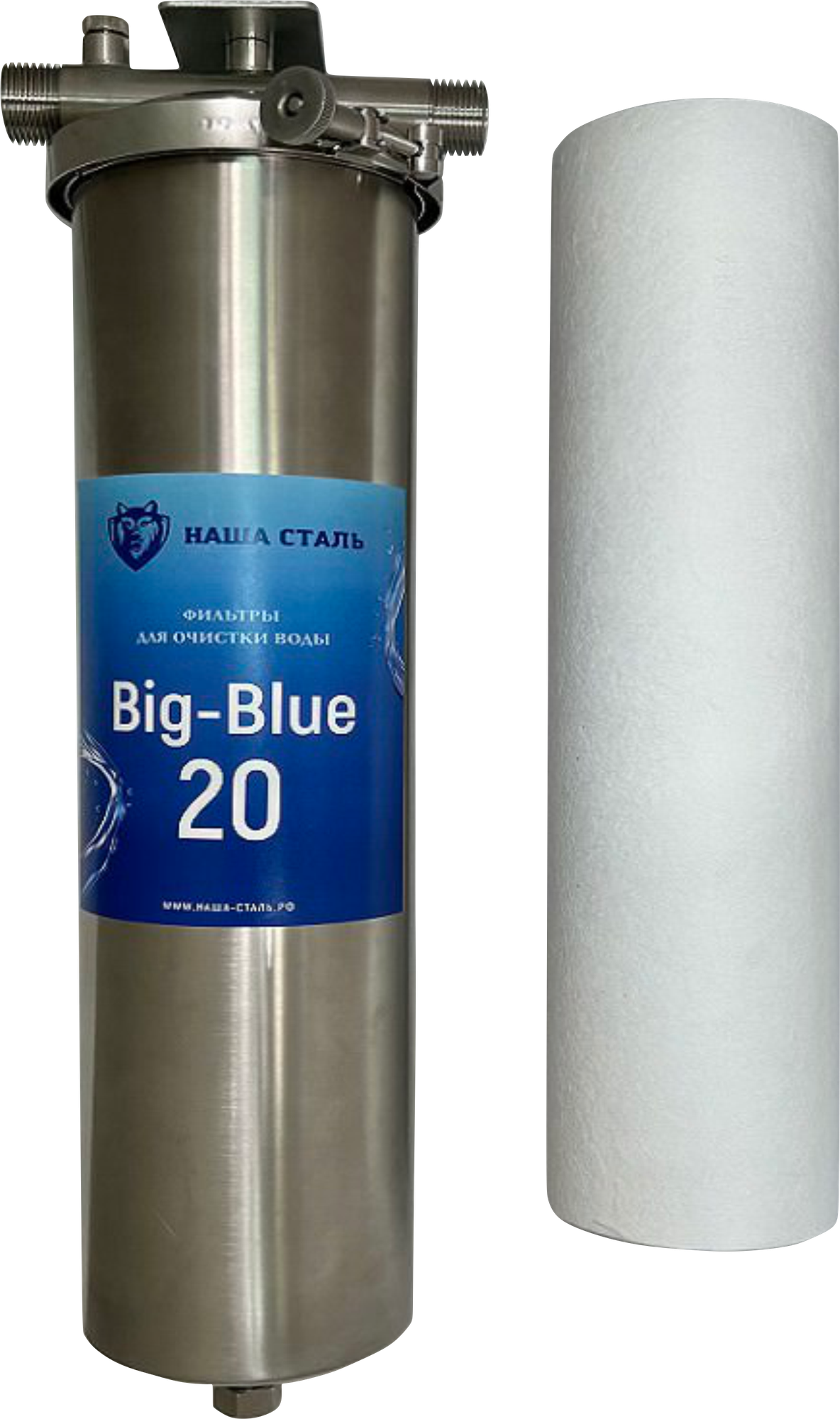 Купить Фильтр из нержавеющей стали магистральный механический полипропиленовый BB20 (Big blue 20) из нержавеющей стали наша сталь, магистральный 1 дюйм