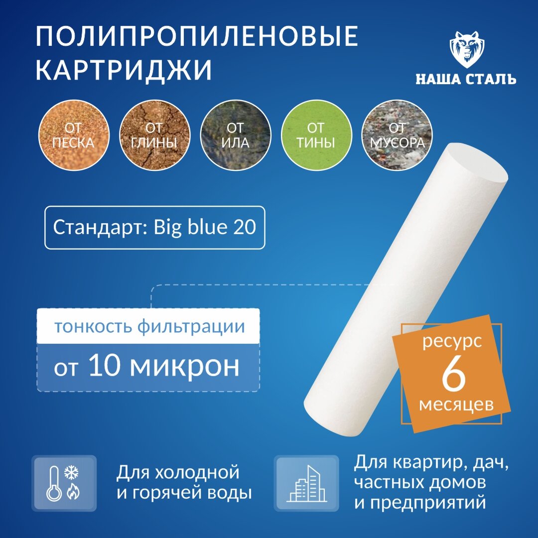 Фильтр из нержавеющей стали магистральный механический полипропиленовый BB20 (Big blue 20) из нержавеющей стали наша сталь, магистральный 1 дюйм интересное: