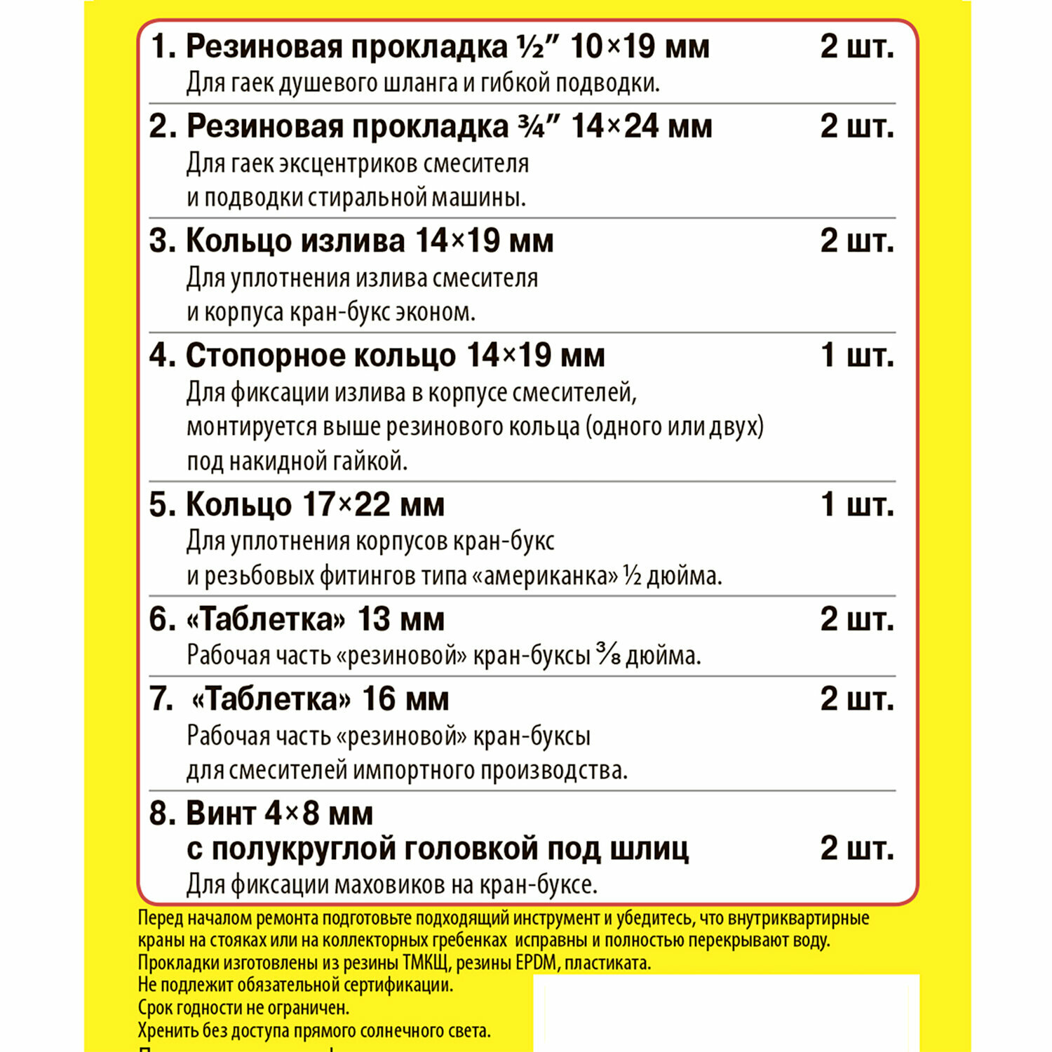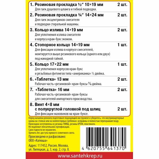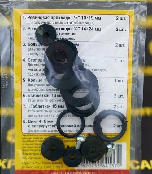 Сантехник №5 набор прокладок для ремонта смесителей ванной комнаты и кухни интересное: