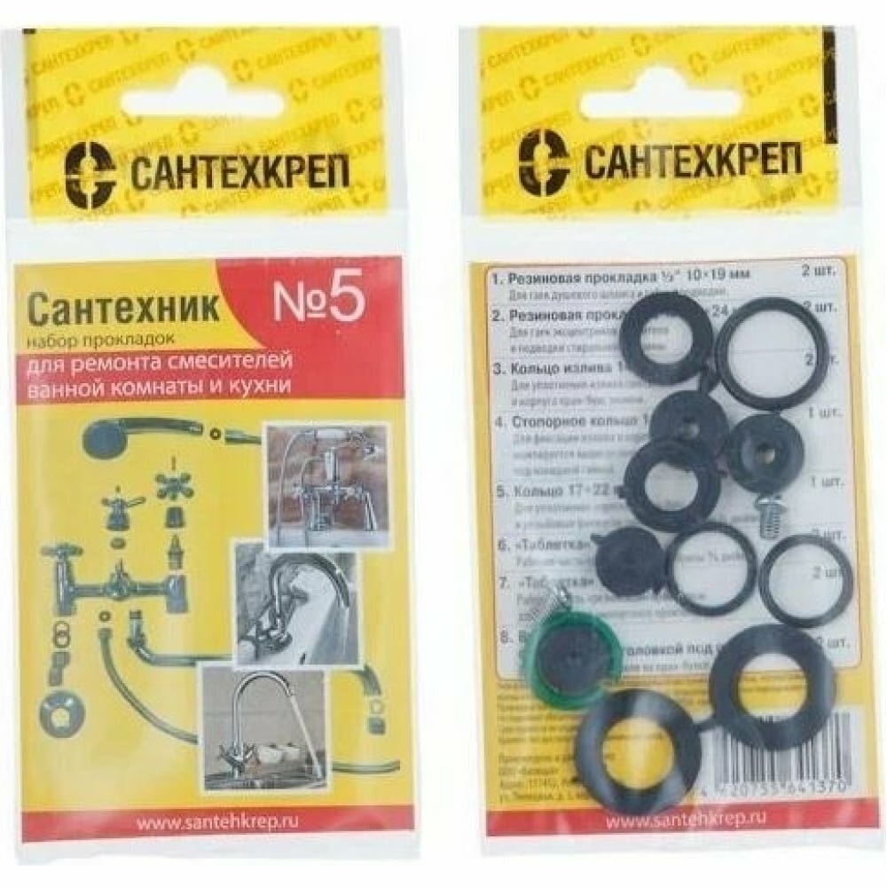 Купить Сантехник №5 набор прокладок для ремонта смесителей ванной комнаты и кухни