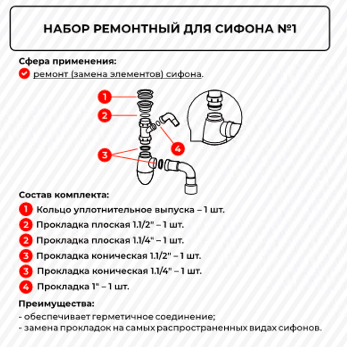MasterProf Набор ремонтный для сифона универсальный №1 ИС.131609 интересное: