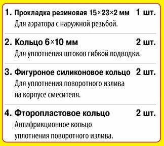 Набор сантехнических прокладок для ремонта смесителя №2, прозрачные