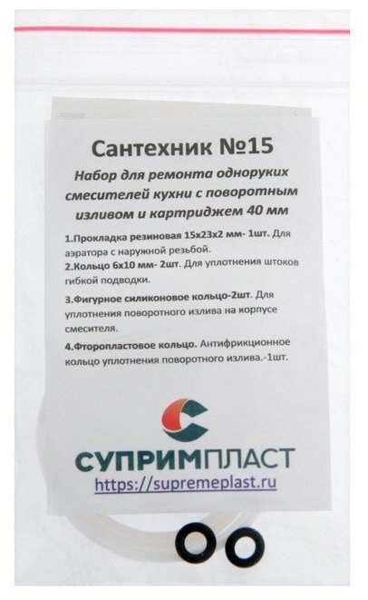 Прокладки сантехнические для однорычажных смесителей с картриджем 40 мм набор 'сантехник' №15