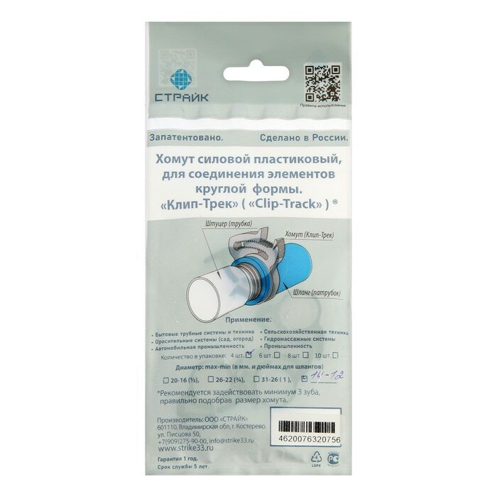 Хомут силовой пластиковый "страйк", диаметр 12-14 мм, многоразовый, Clip-Track, 4 шт. интересное: