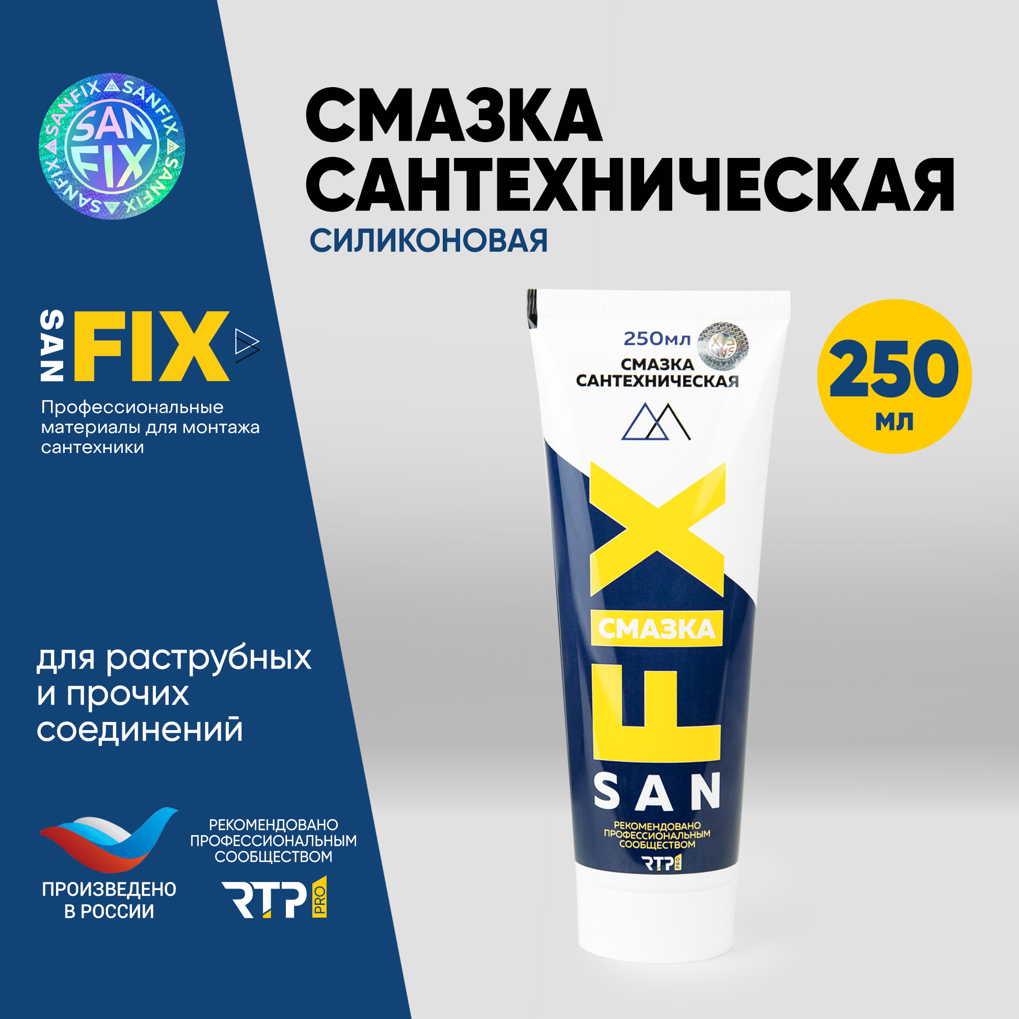 Купить Смазка сантехническая силиконовая для раструбных и прочих соединений в т.ч. резиновых 250 мл., в тубе, SANFIX